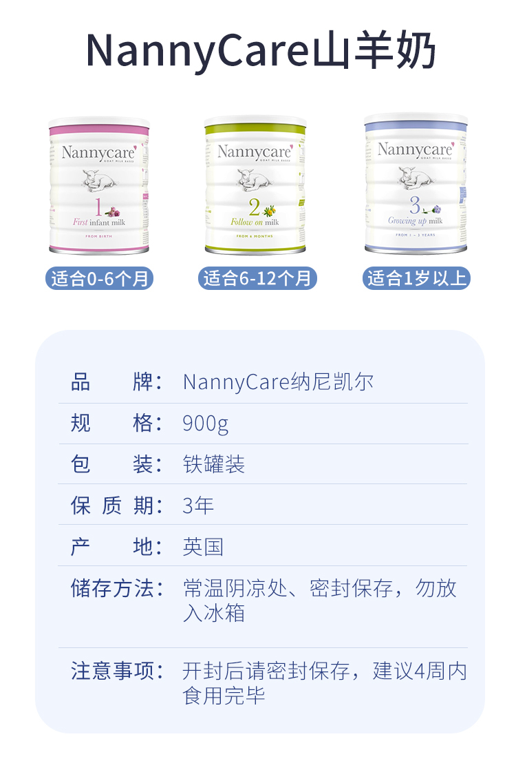 英国Nannycare纳尼凯尔婴幼儿羊奶粉3段900g