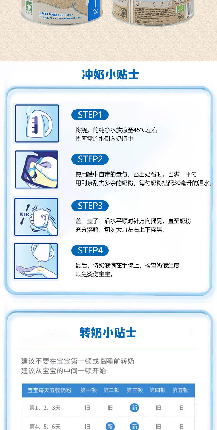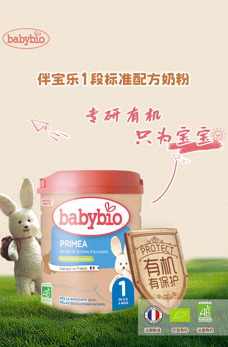 法国伴宝乐Babybio有机配方 1段牛奶粉 800g (新旧包装随机)