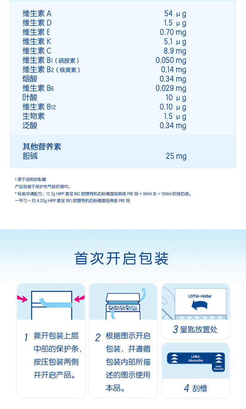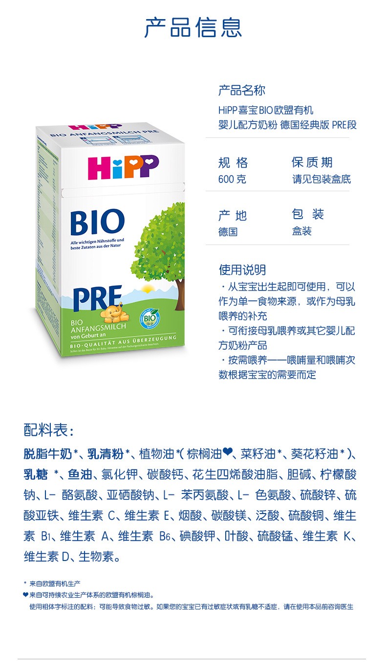 德国 喜宝(HiPP)有机奶粉Pre段 600g(新旧随机)