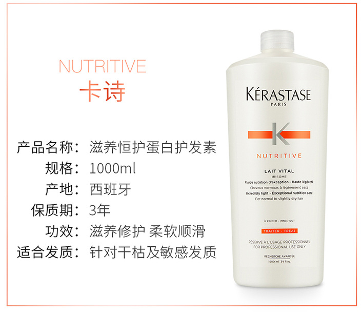 西班牙卡诗(KERASTASE)滋养蛋白恒护护发素1000ml(干枯、敏感发质、滋养修复 柔软顺滑)