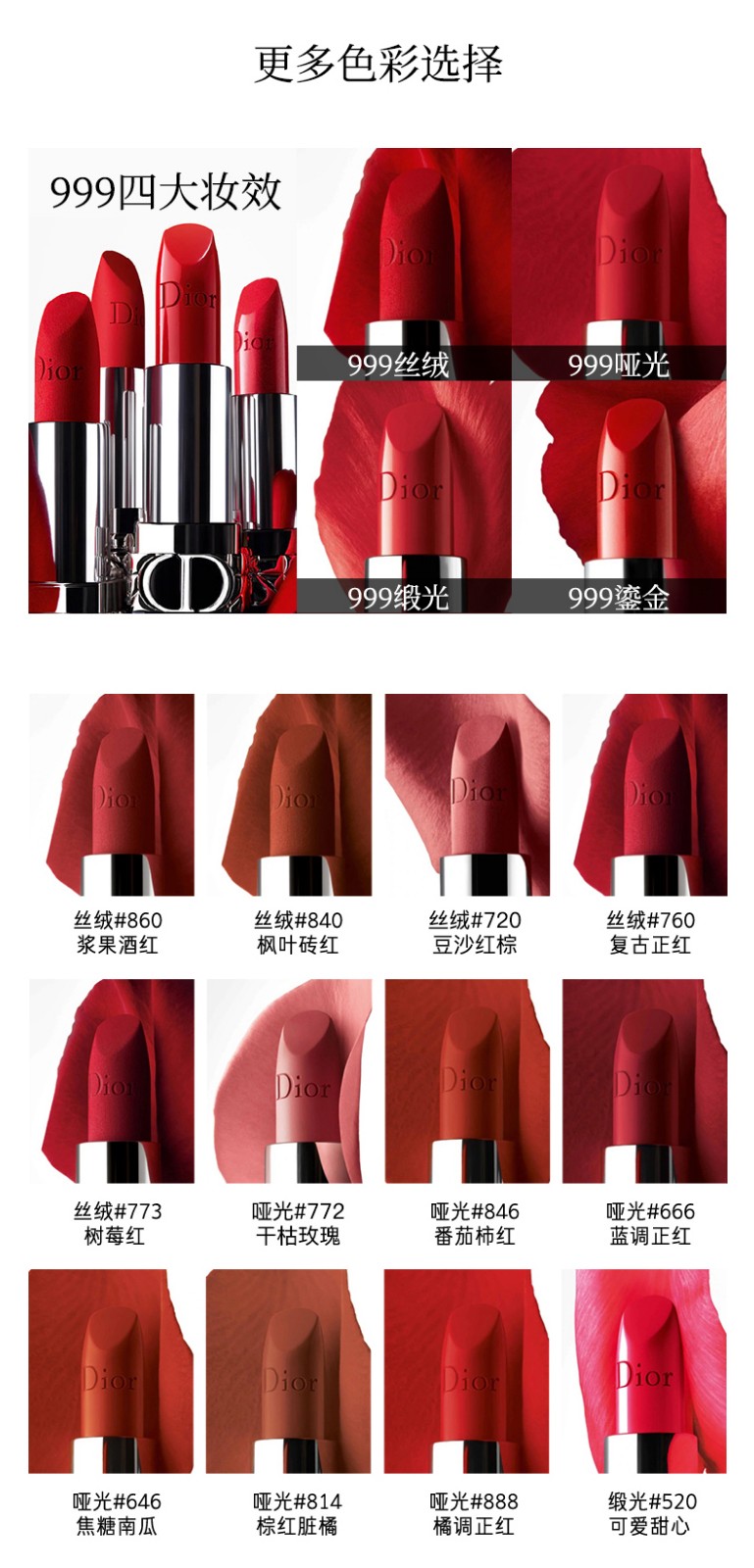 迪奥/Dior 口红烈艳蓝金唇膏 丝绒840#枫叶砖红 新色