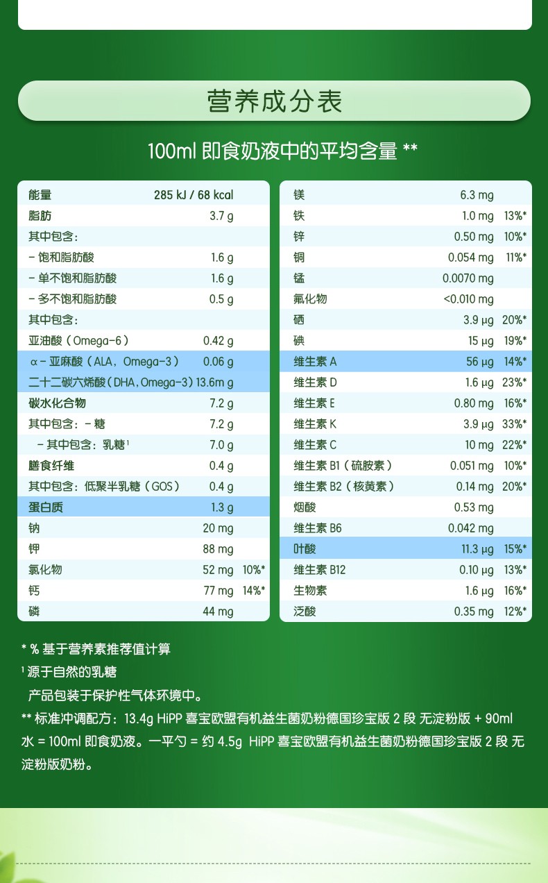 德国喜宝益生菌无淀粉2段600g/盒(新旧随机)