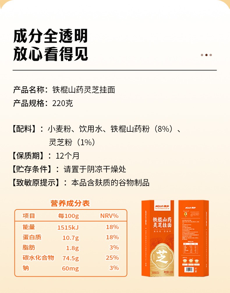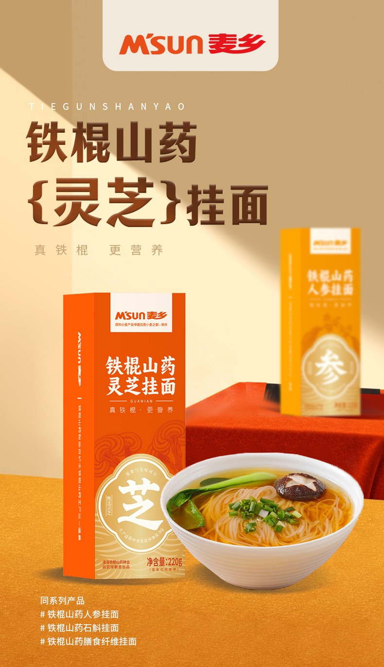 麦乡 铁棍山药灵芝挂面220g*6盒