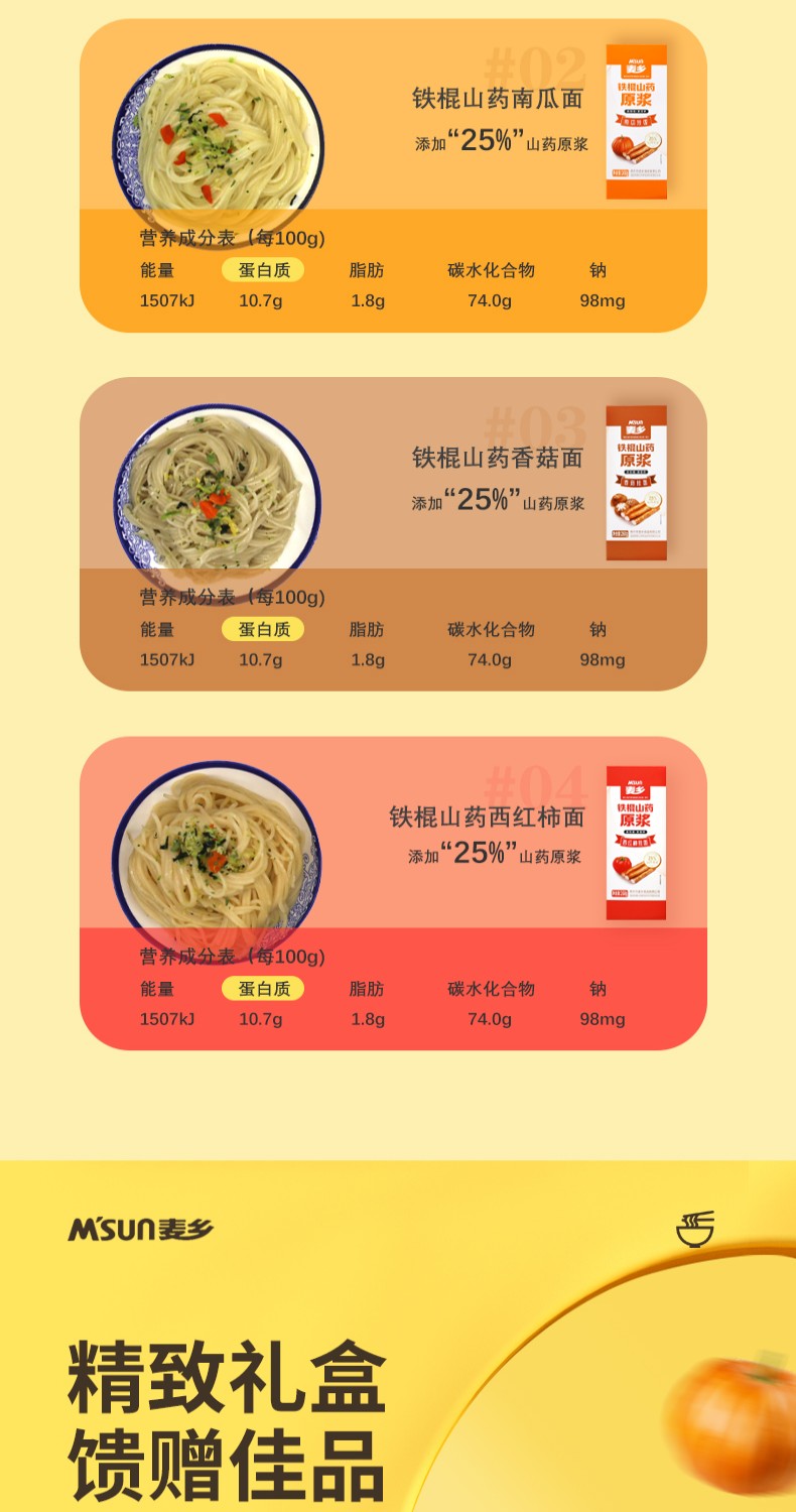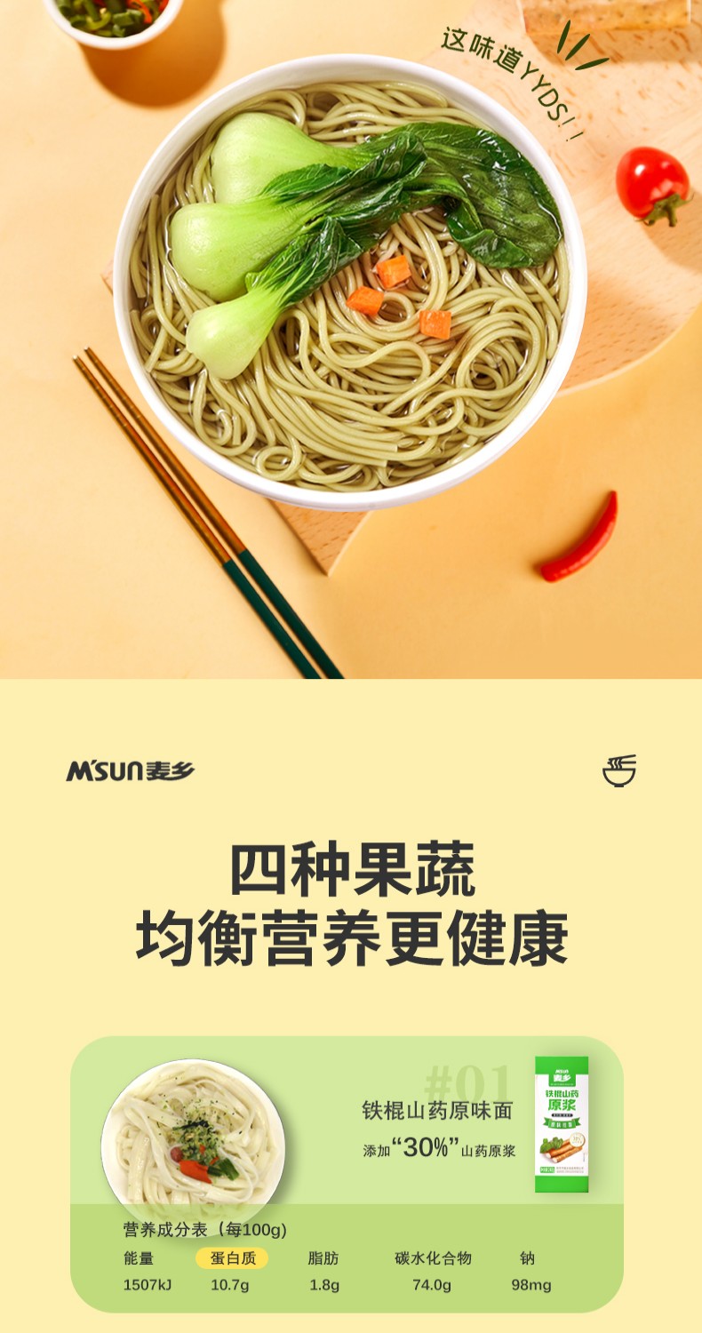 麦乡 铁棍山药原浆果蔬面260g*8袋/箱