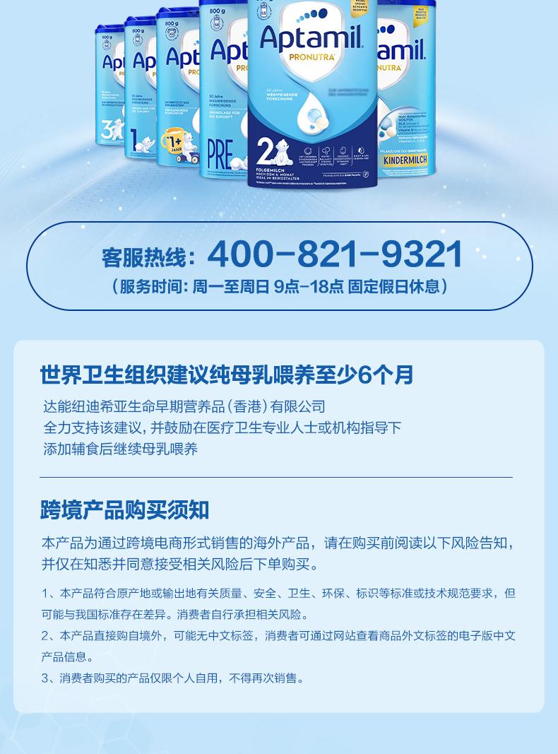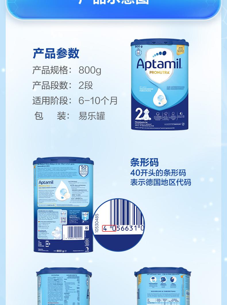 德国爱他美Aptamil婴儿配方奶粉2段800g罐(新旧随机)