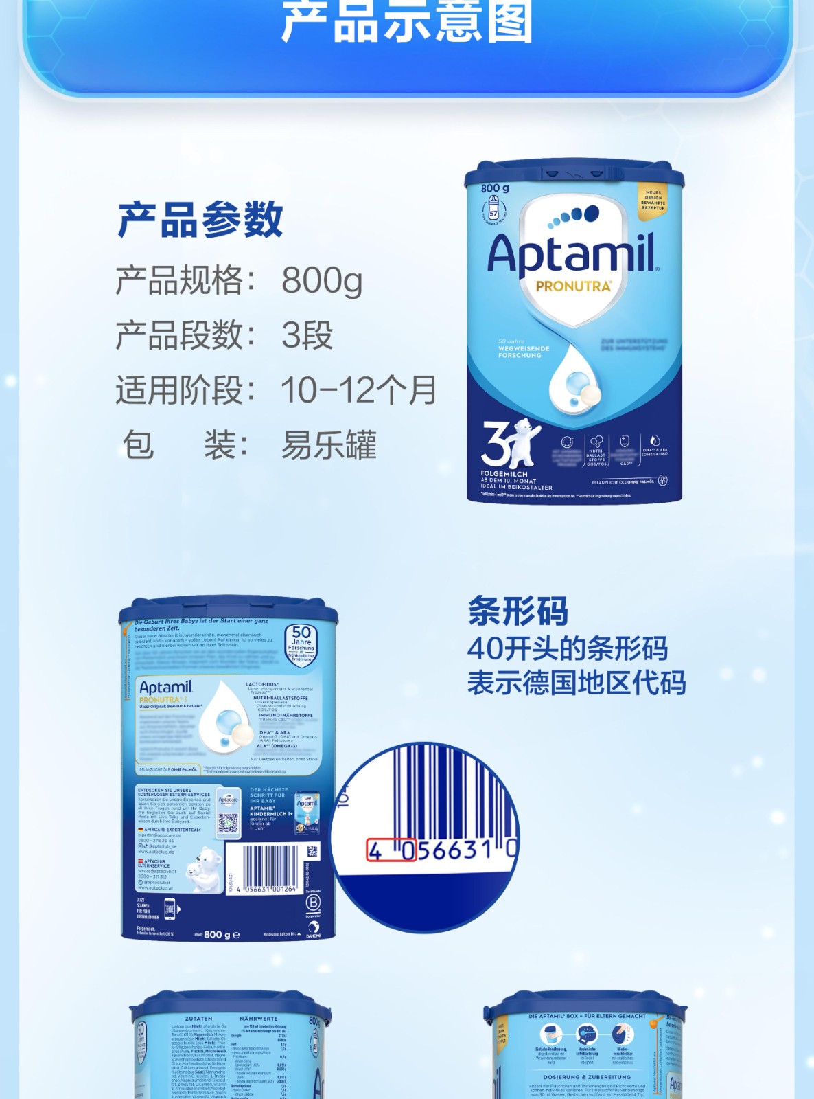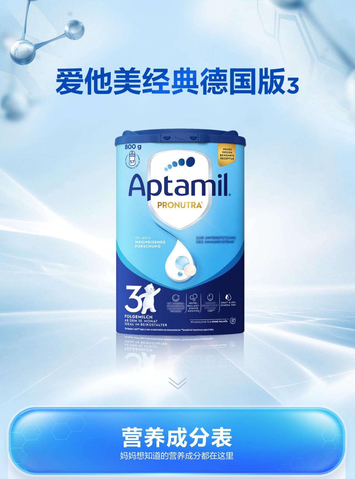 德国爱他美Aptamil幼儿配方奶粉3段800g罐(新旧随机)