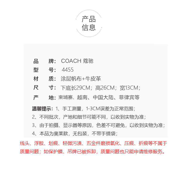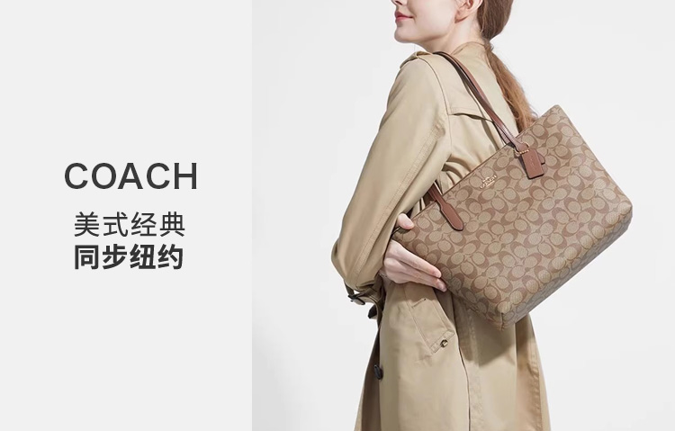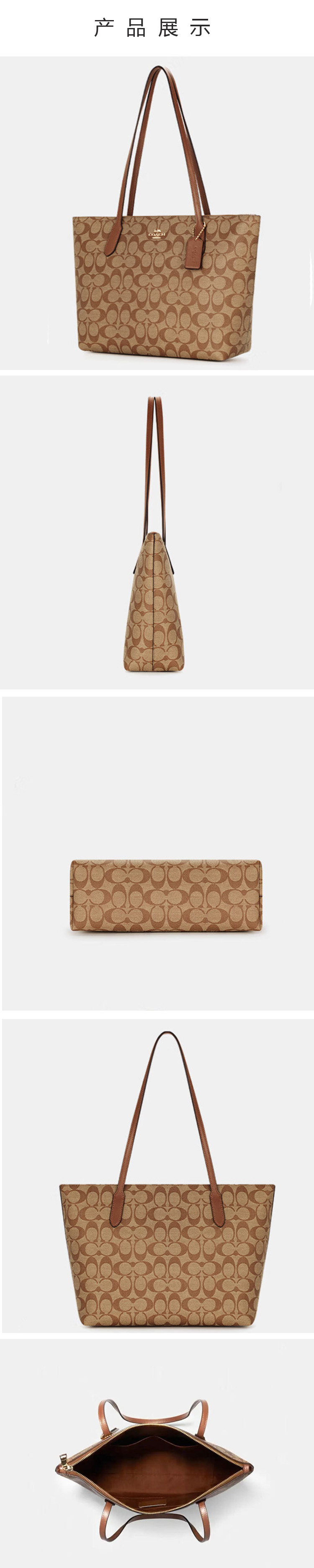 COACH蔻驰ZIP30托特包单肩4455 卡其棕色