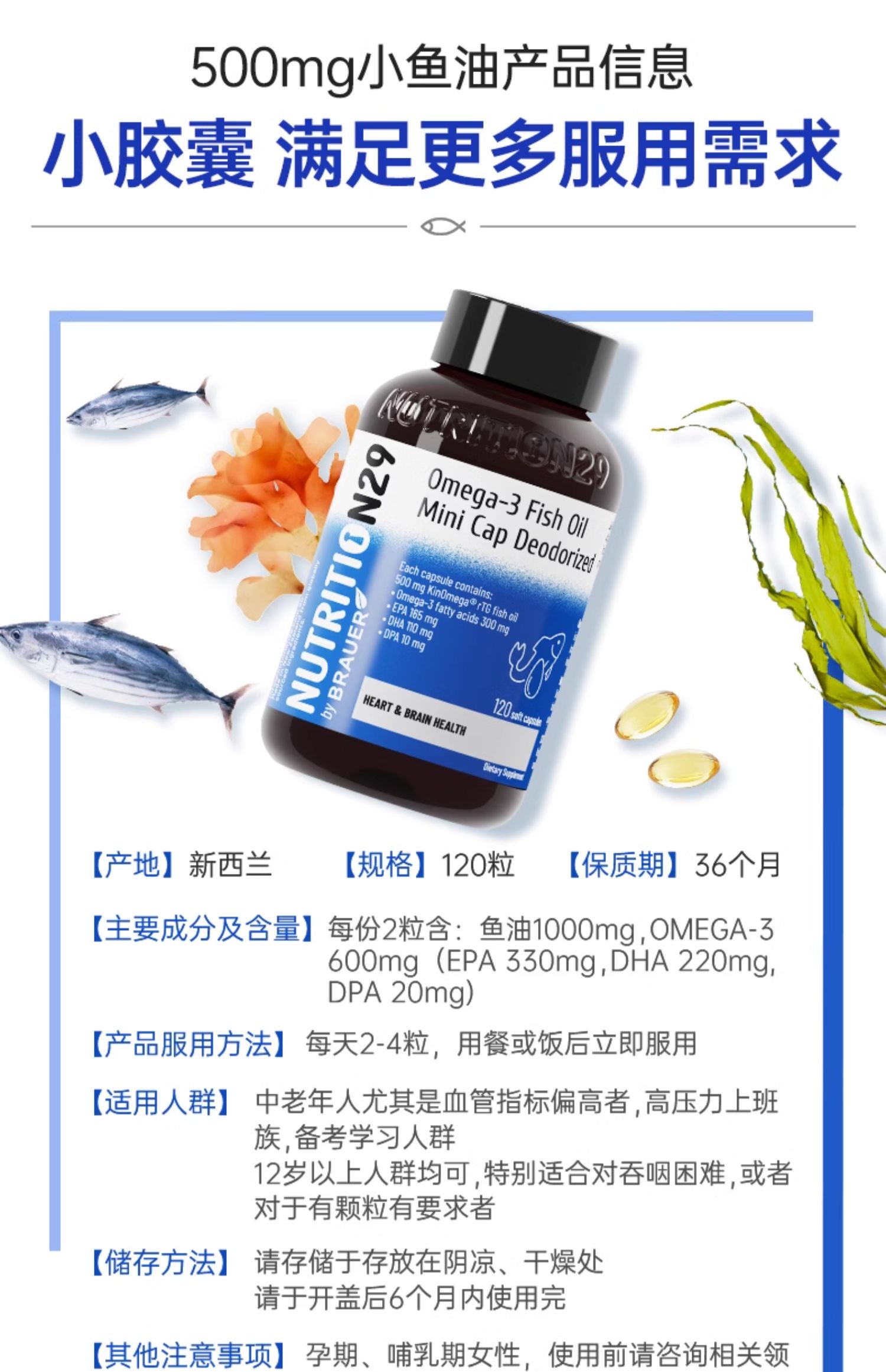 Nutrition29纽西臣无腥鱼油软胶囊小粒装120粒
