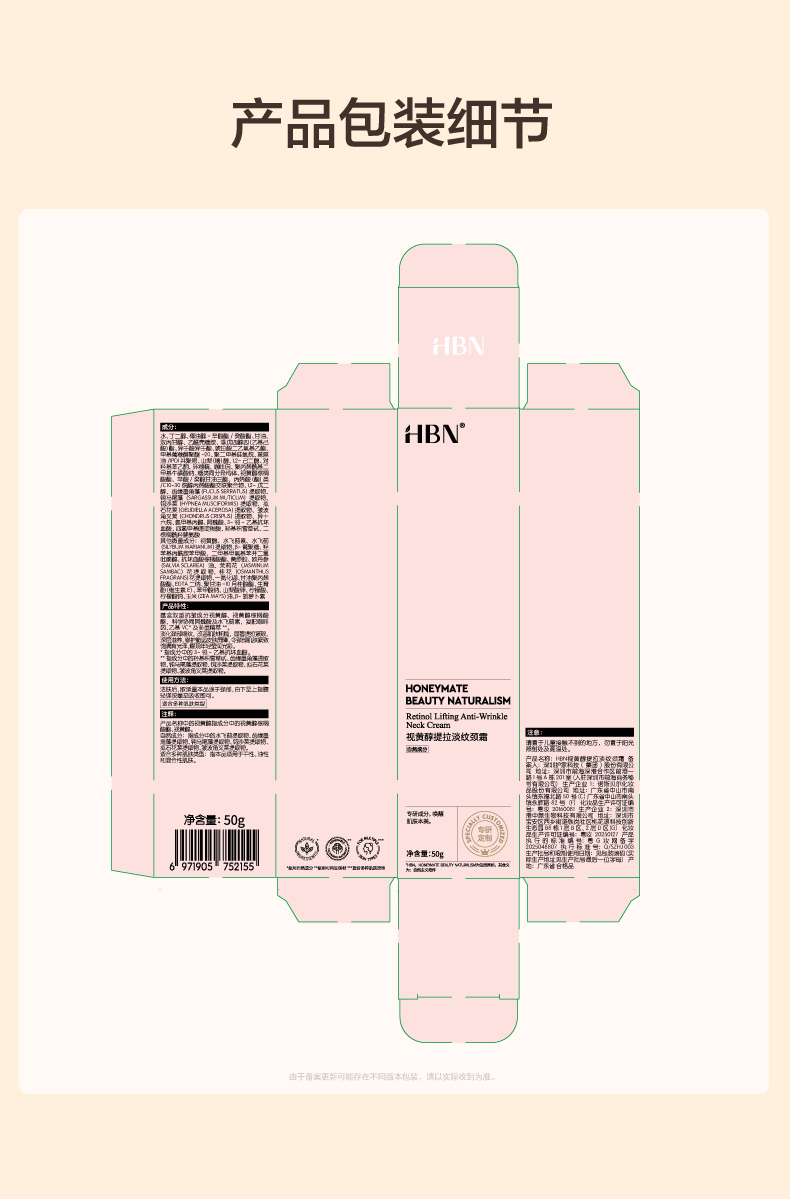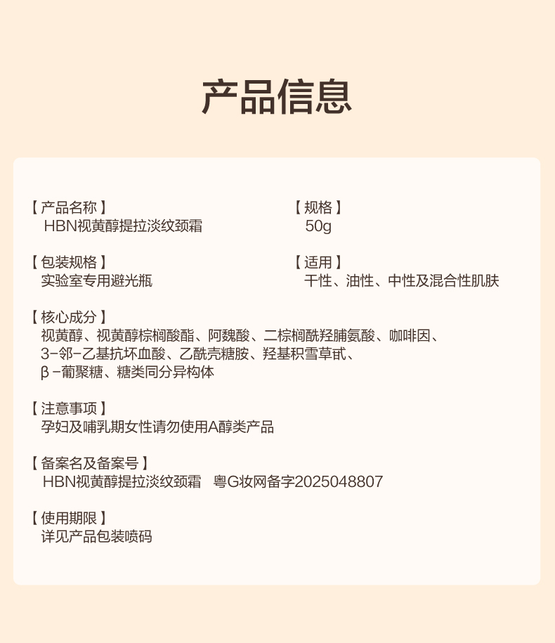 HBN 视黄醇提拉淡纹颈霜2.0(50g*1瓶)