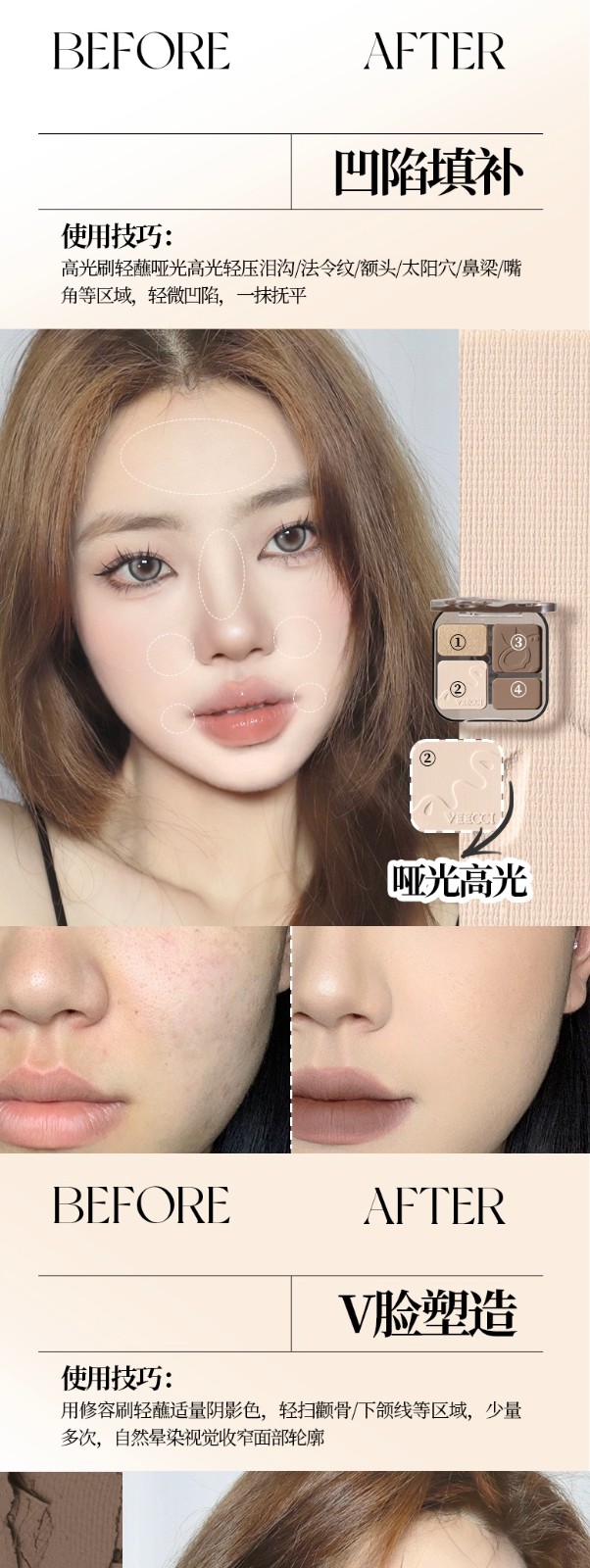 唯资VEECCI 自在易绘高光修容盘V02 雾桃灰(8g)