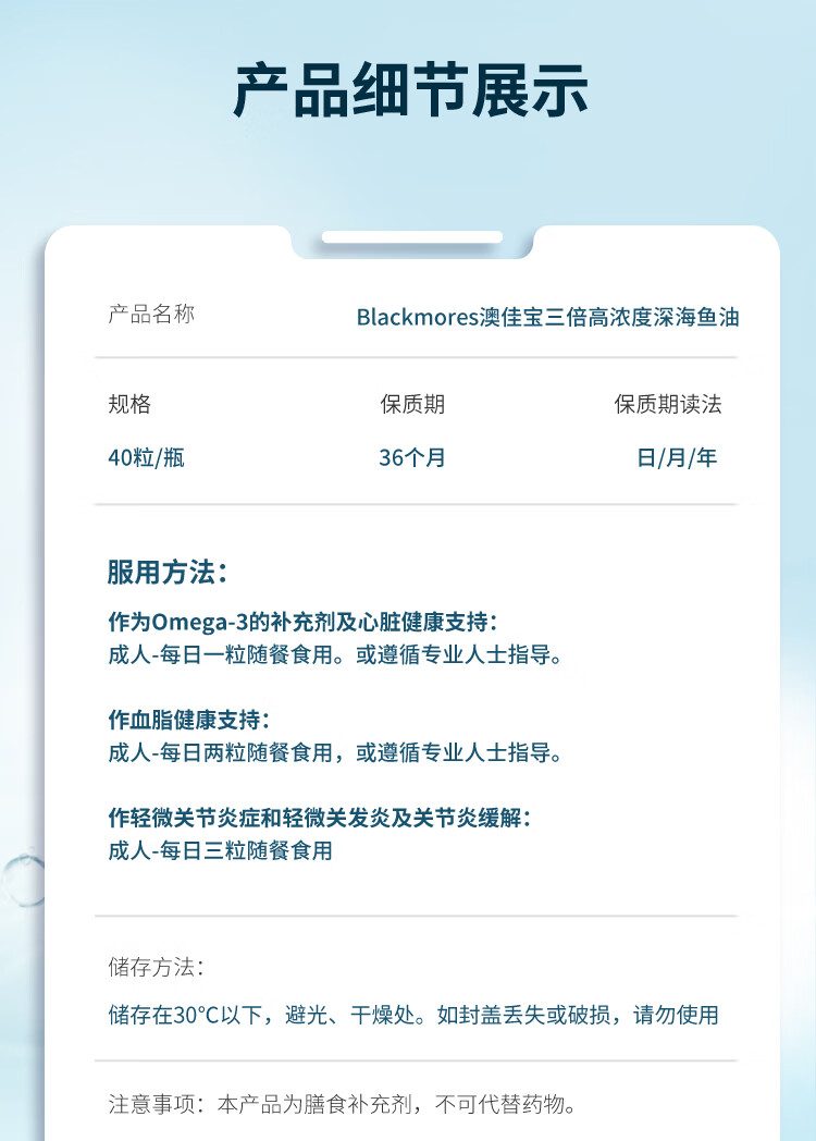 BLACKMORES澳佳宝三倍高浓缩无腥味鱼油胶囊 40粒