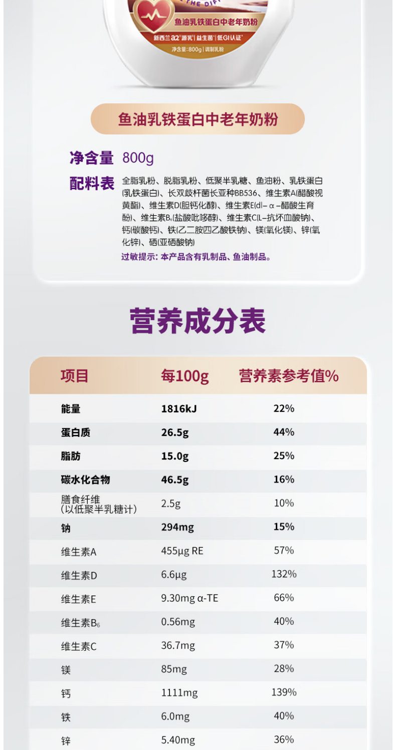 A2 鱼油乳铁蛋白奶粉800g