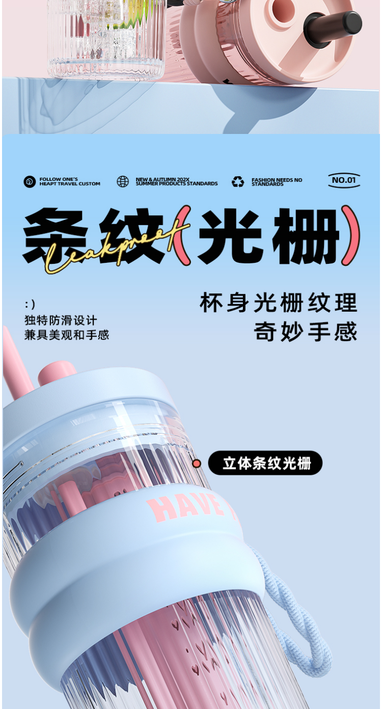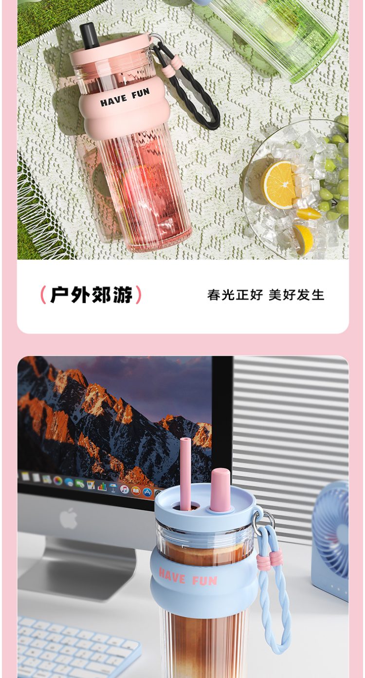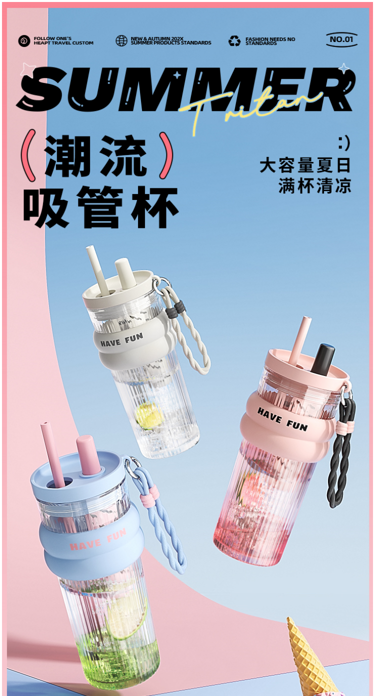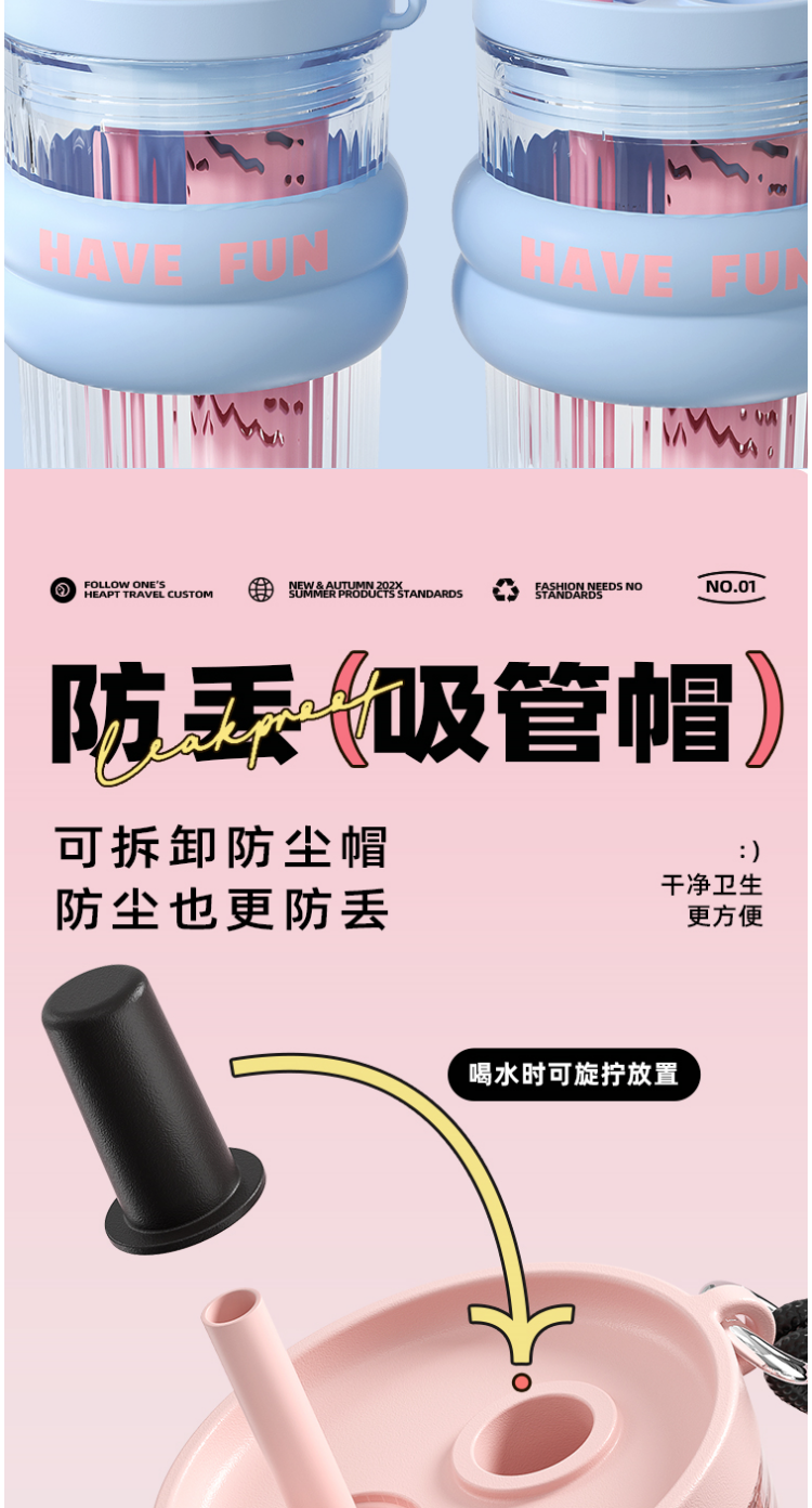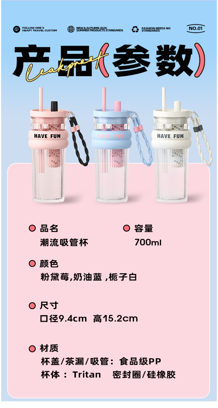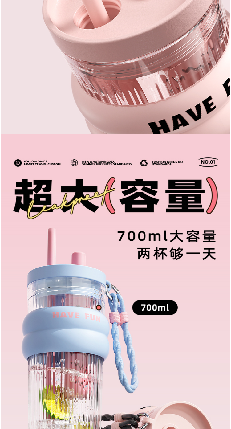 FACE 大容量潮流吸管杯【蓝色】(700ml)