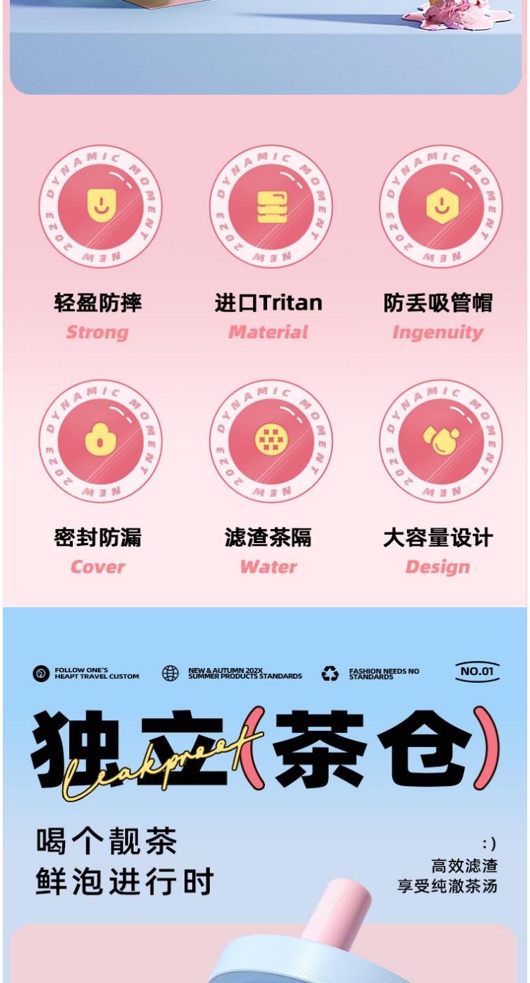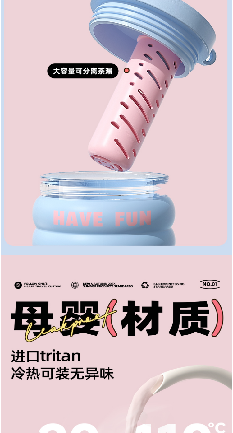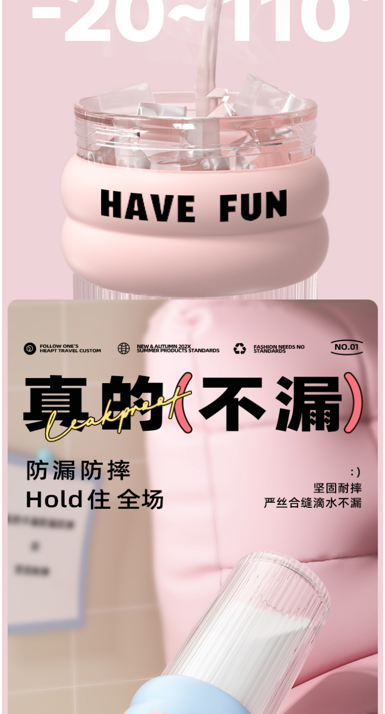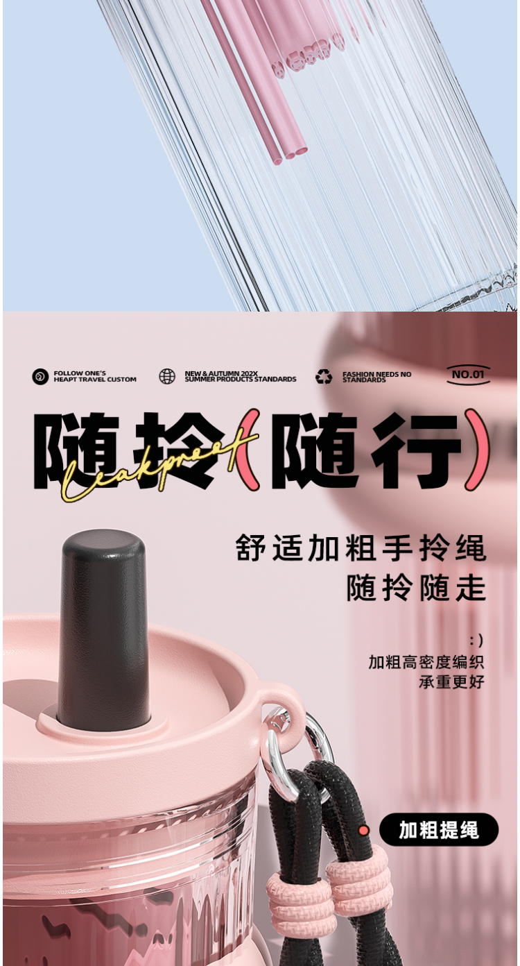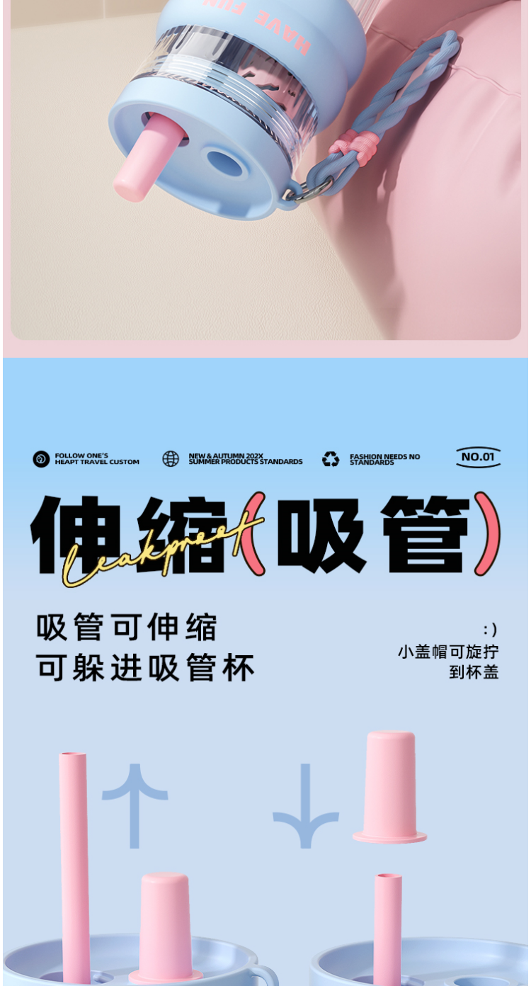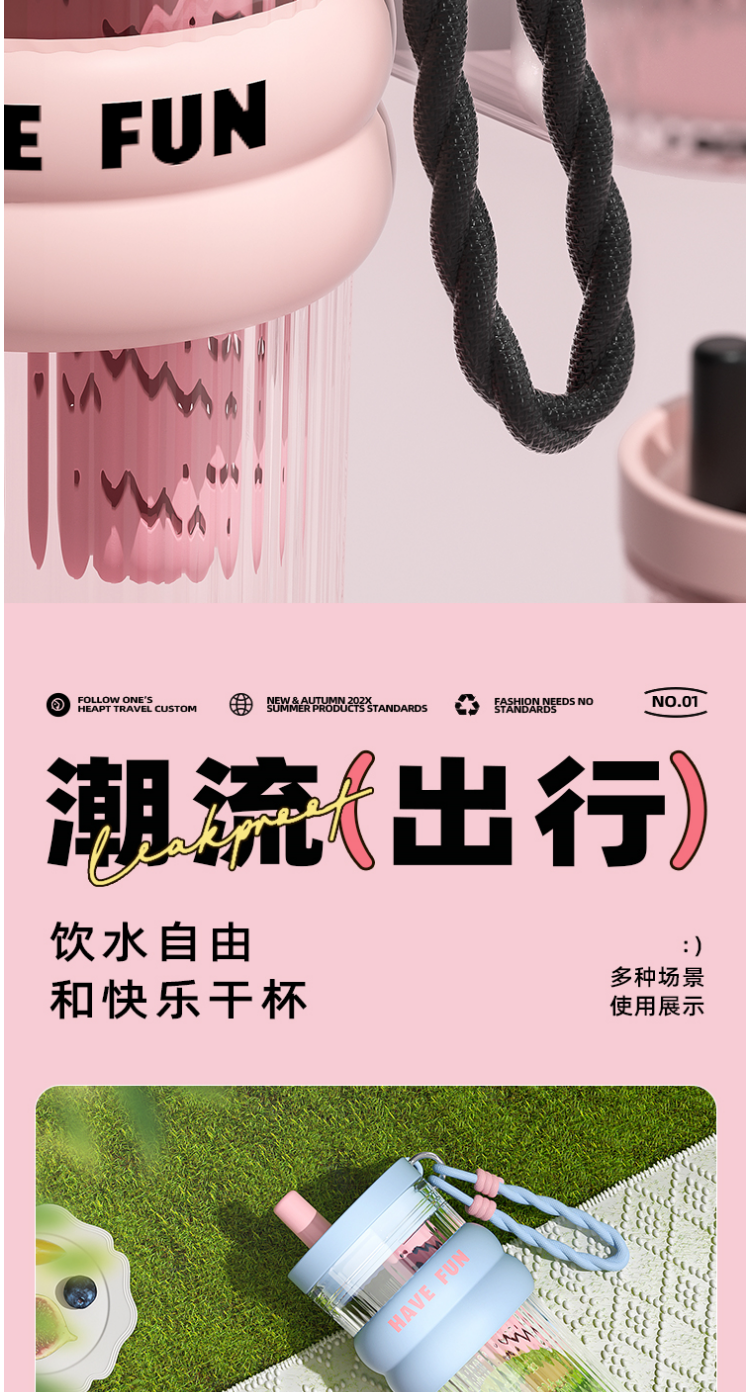 FACE 大容量潮流吸管杯【蓝色】(700ml)