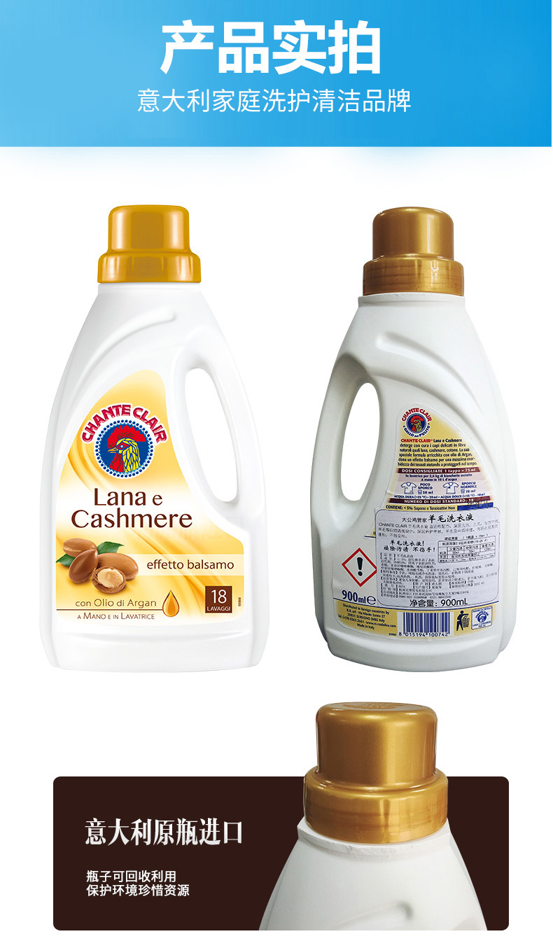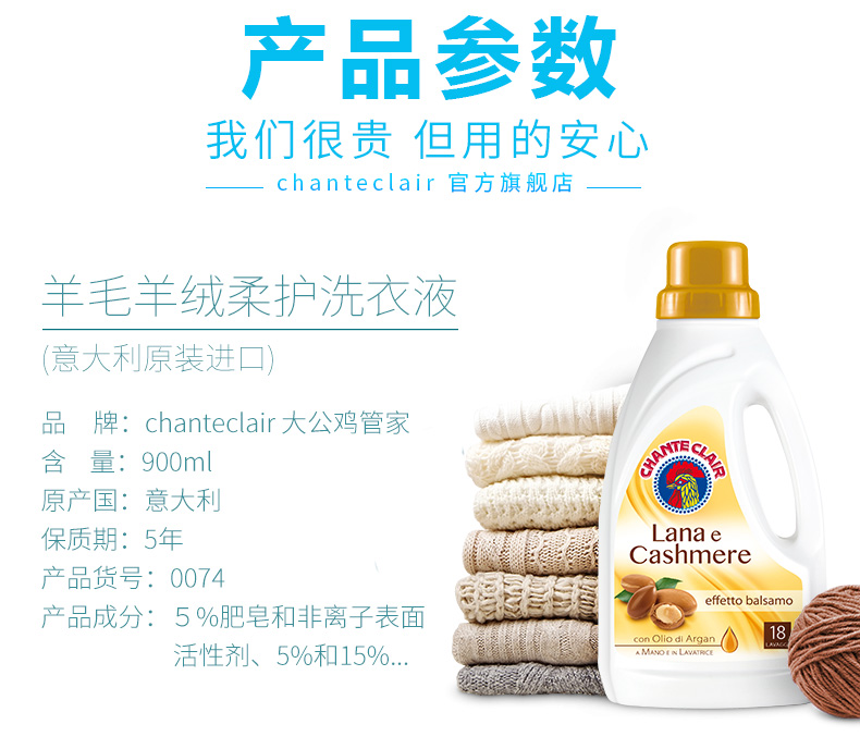 大公鸡管家 羊毛羊绒柔护洗衣液900ml*2瓶