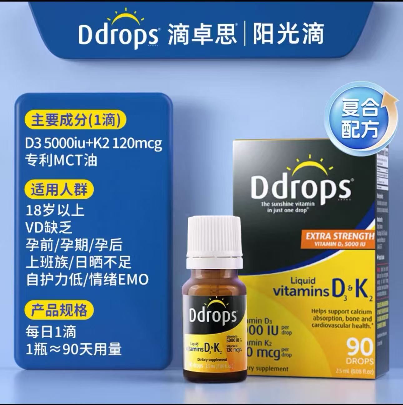 Ddrops成人维生素d3-5000IU+维生素k2滴剂2.5ml/瓶
