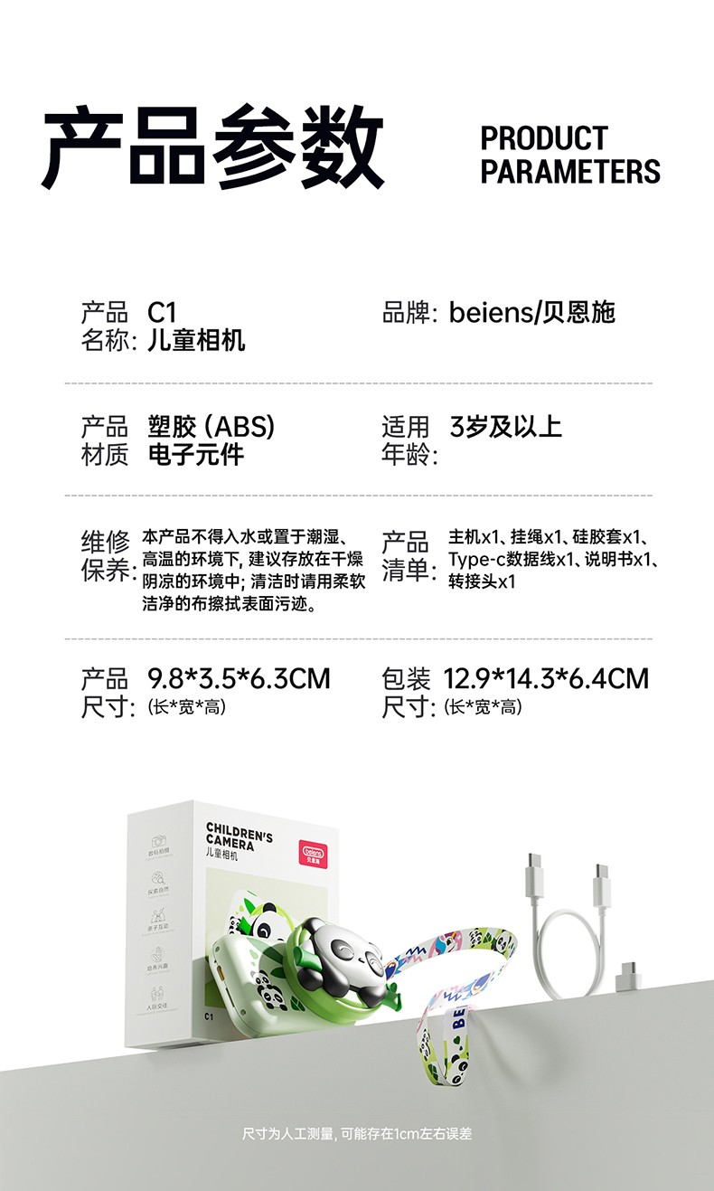 贝恩施 C1儿童数码相机64G内存(粉色)