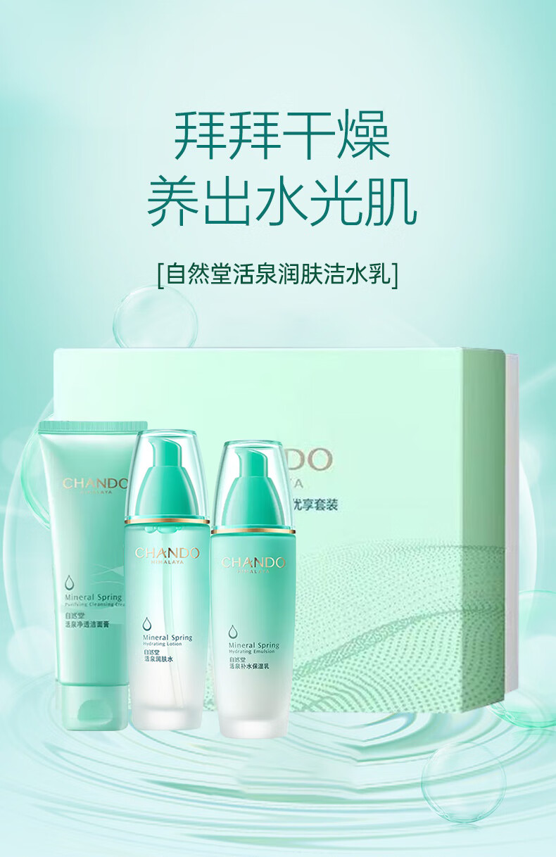 自然堂 活泉保湿优享套装(洁面125g+水100ml+乳液100ml)