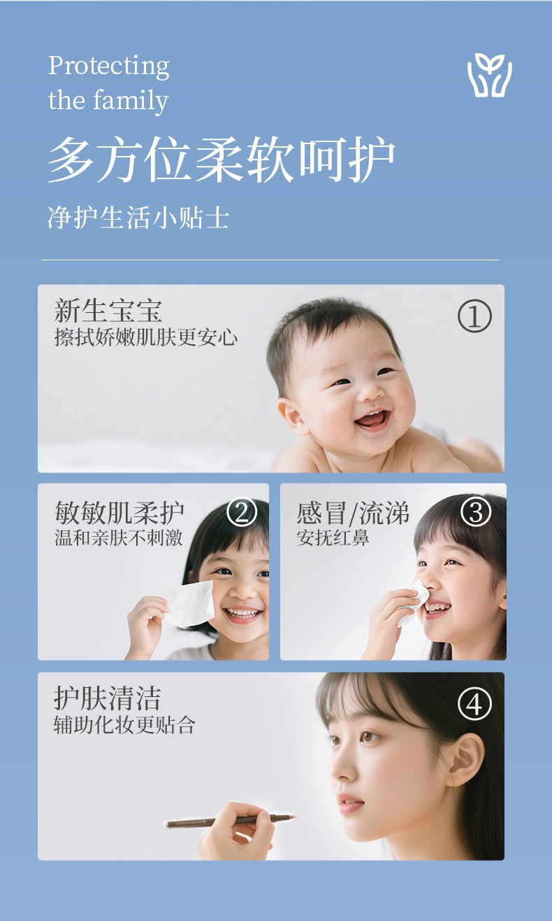 植护 茶树油乳霜保湿纸云朵熊 130*175/3层 100抽16包
