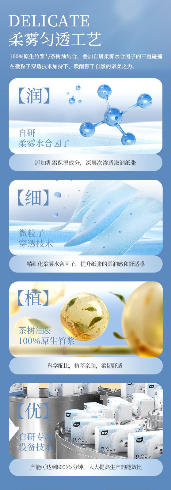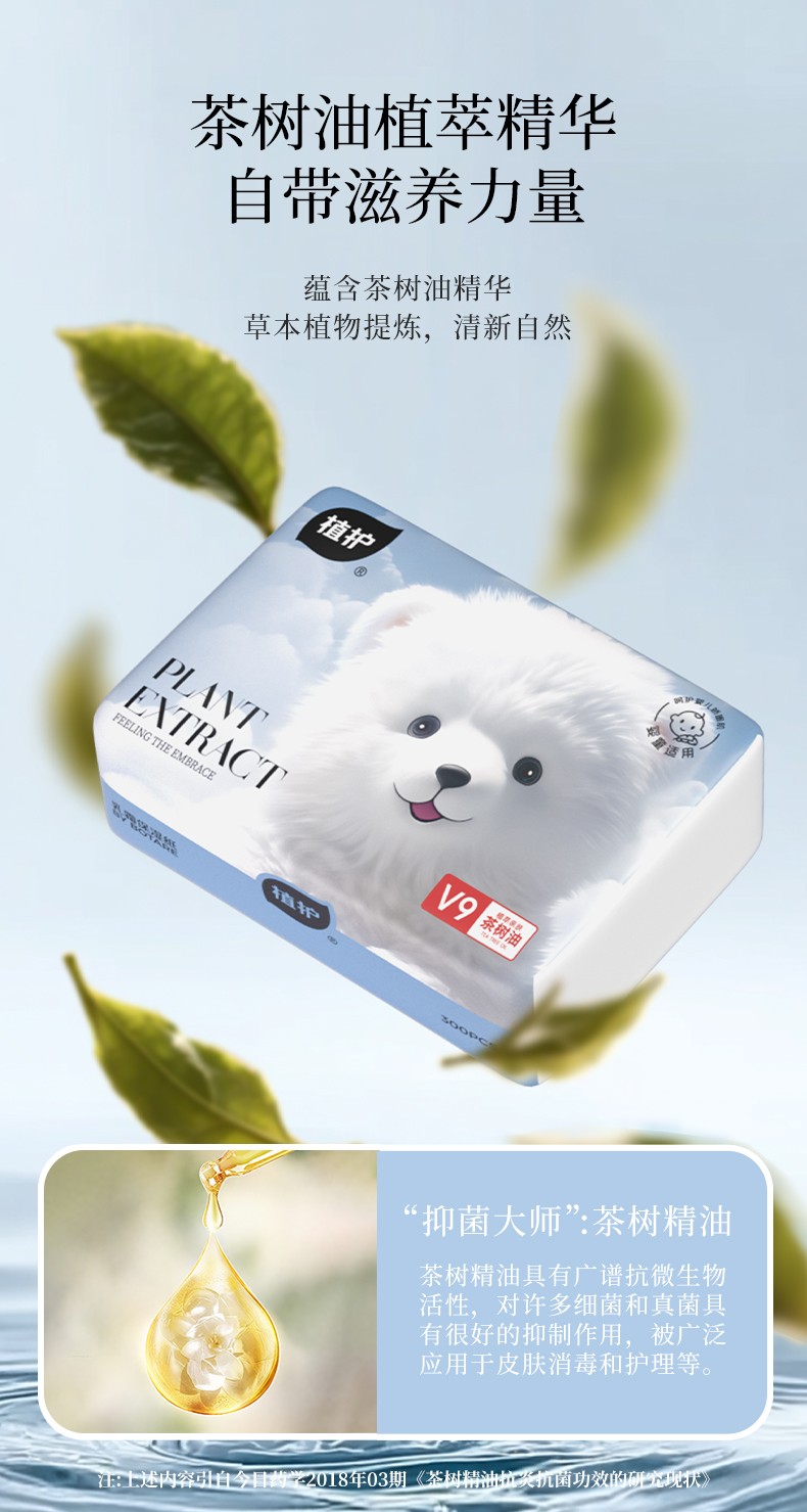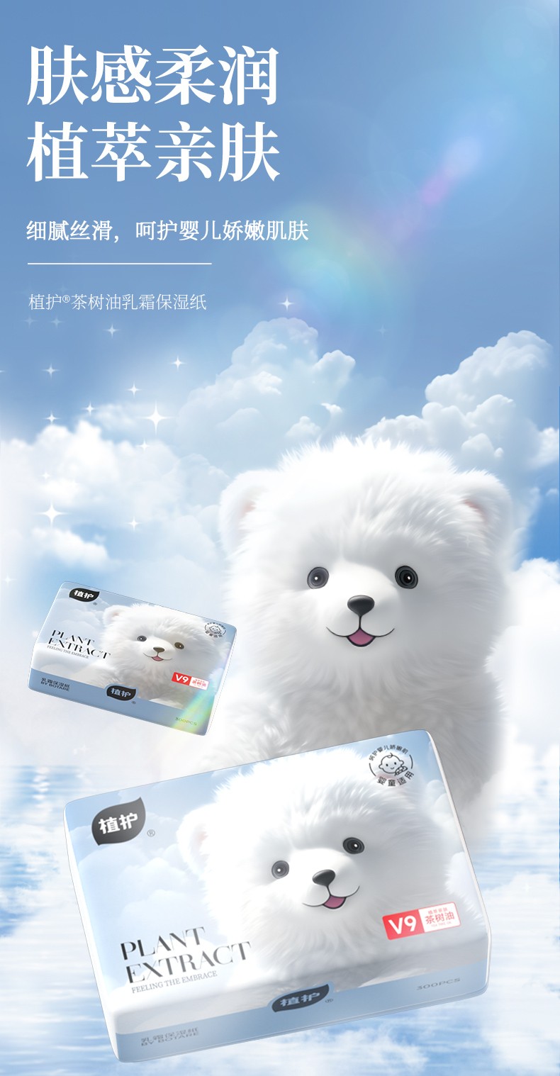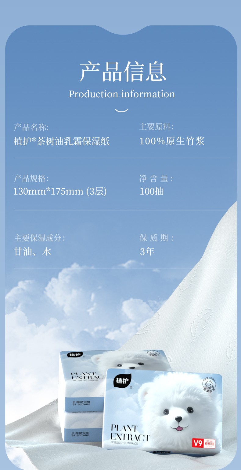 植护 茶树油乳霜保湿纸云朵熊 130*175/3层 100抽8包
