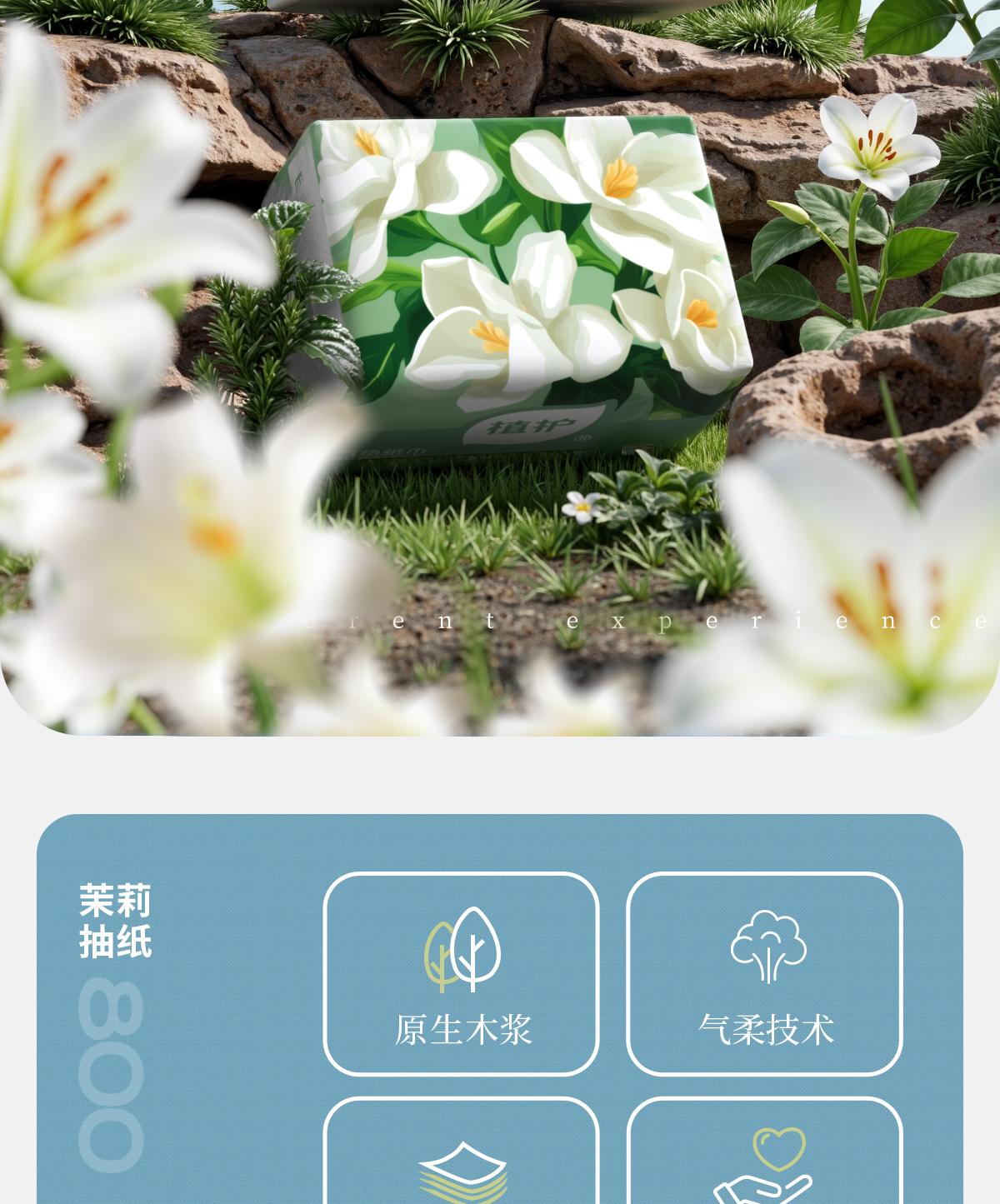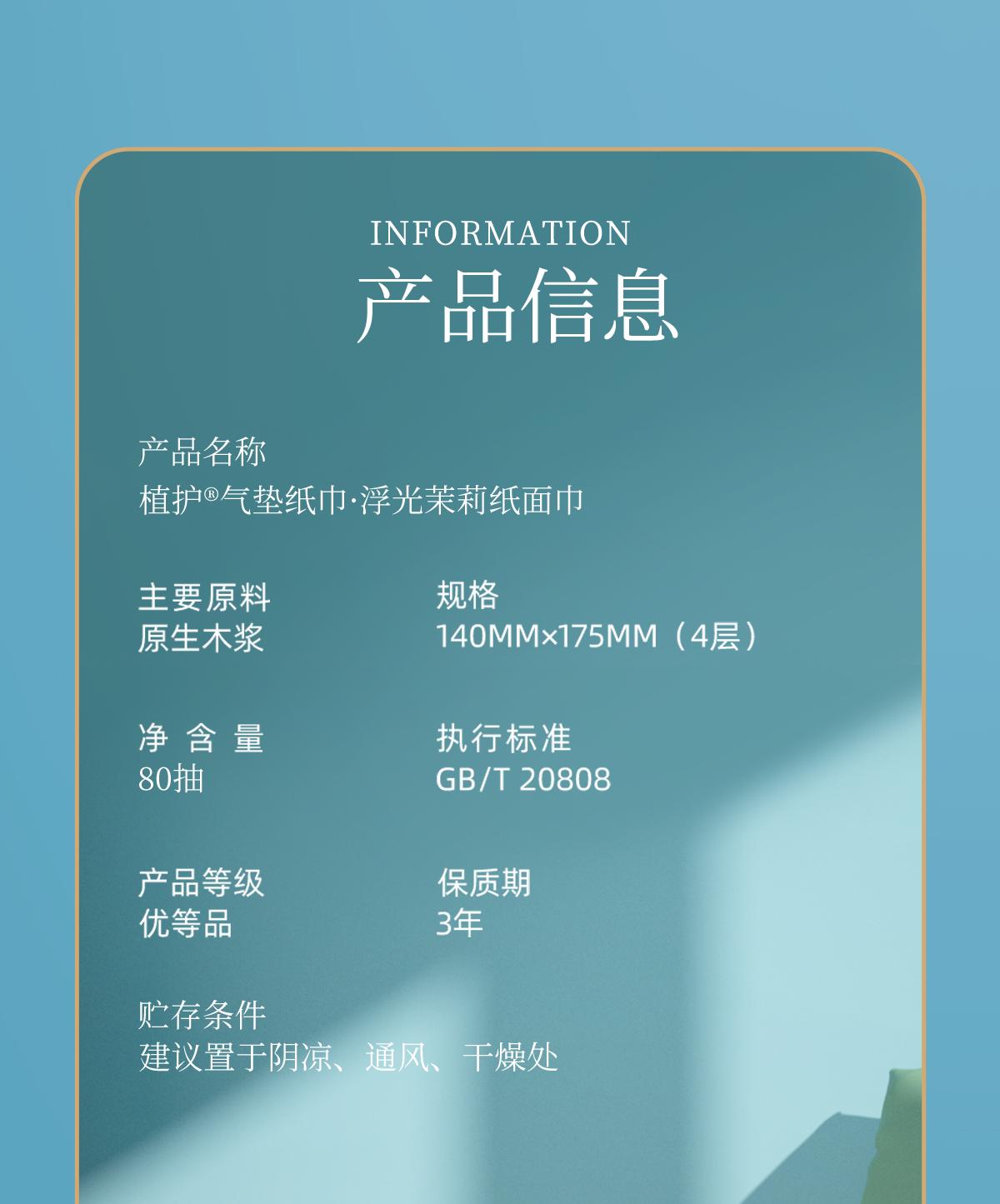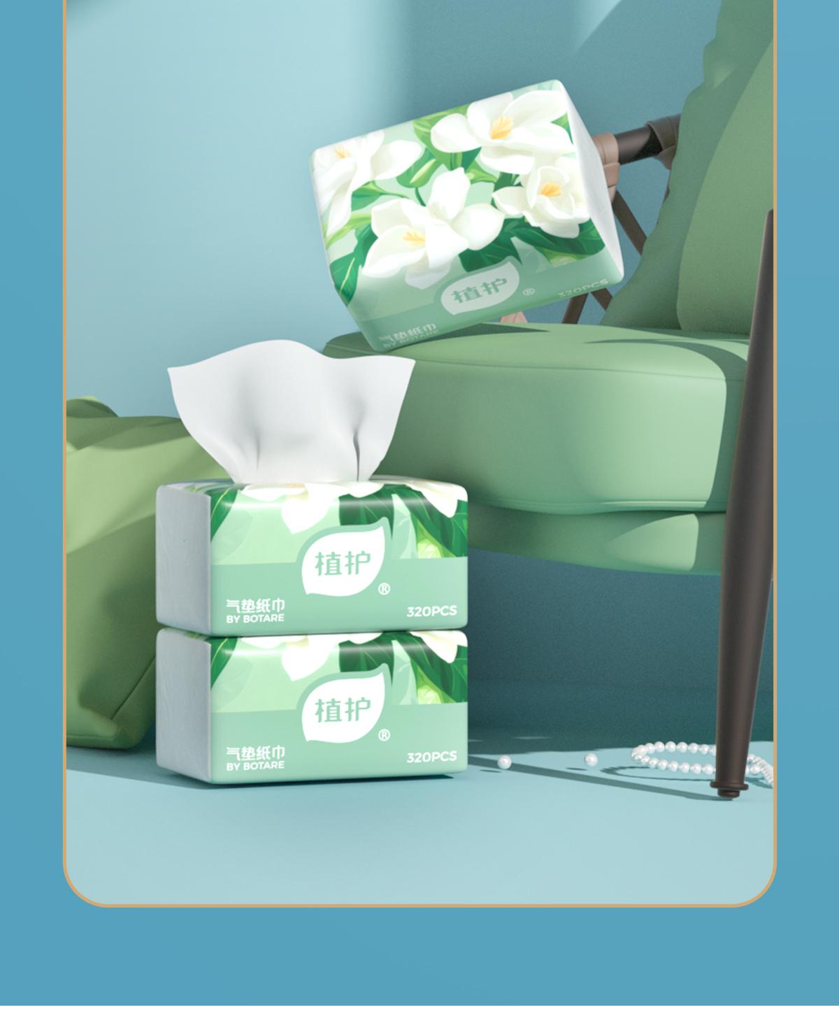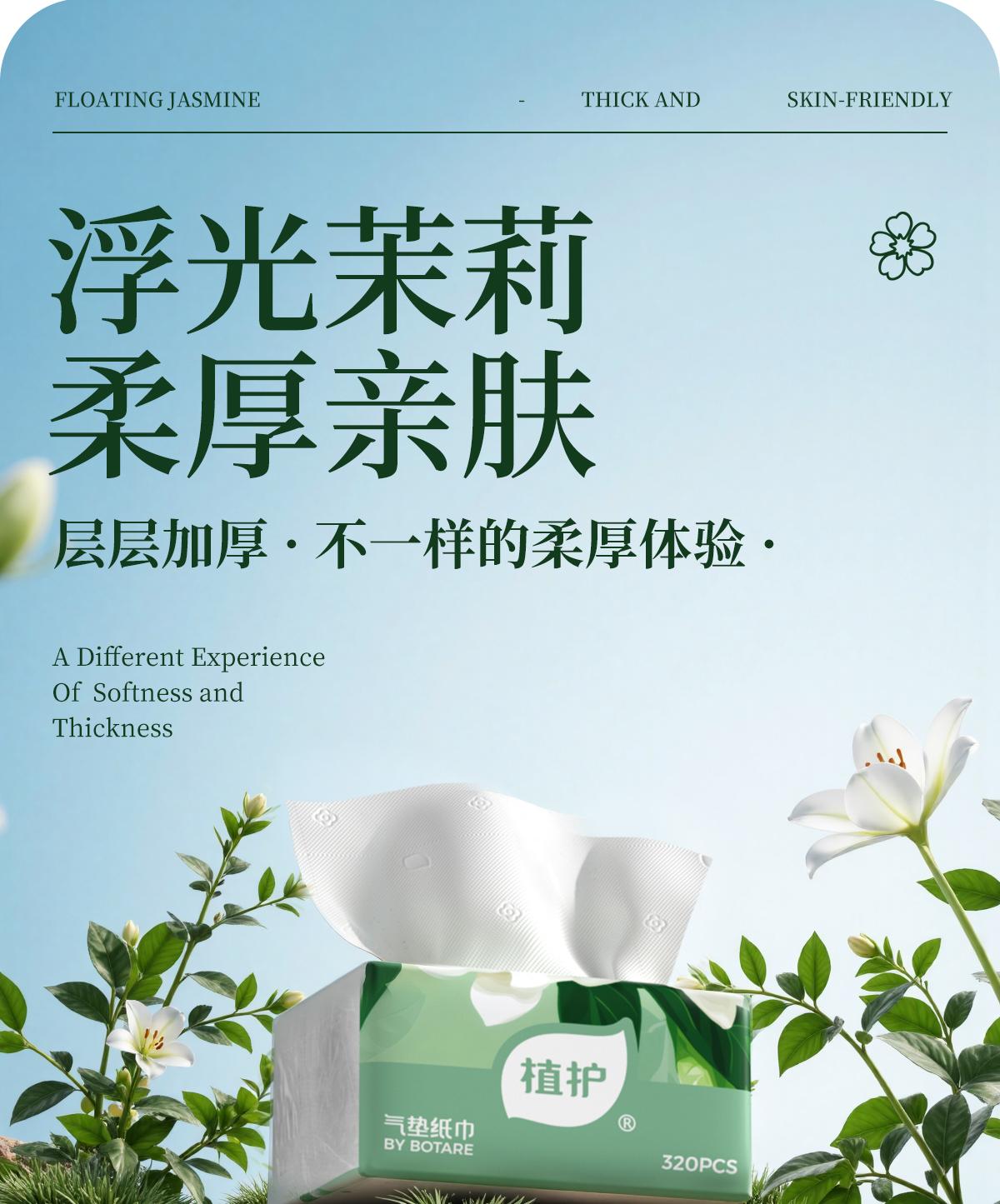 植护 浮光茉莉气垫厚纸巾 140*175/4层 80抽 3包