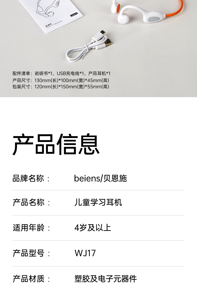 贝恩施 WJ17儿童学习耳机