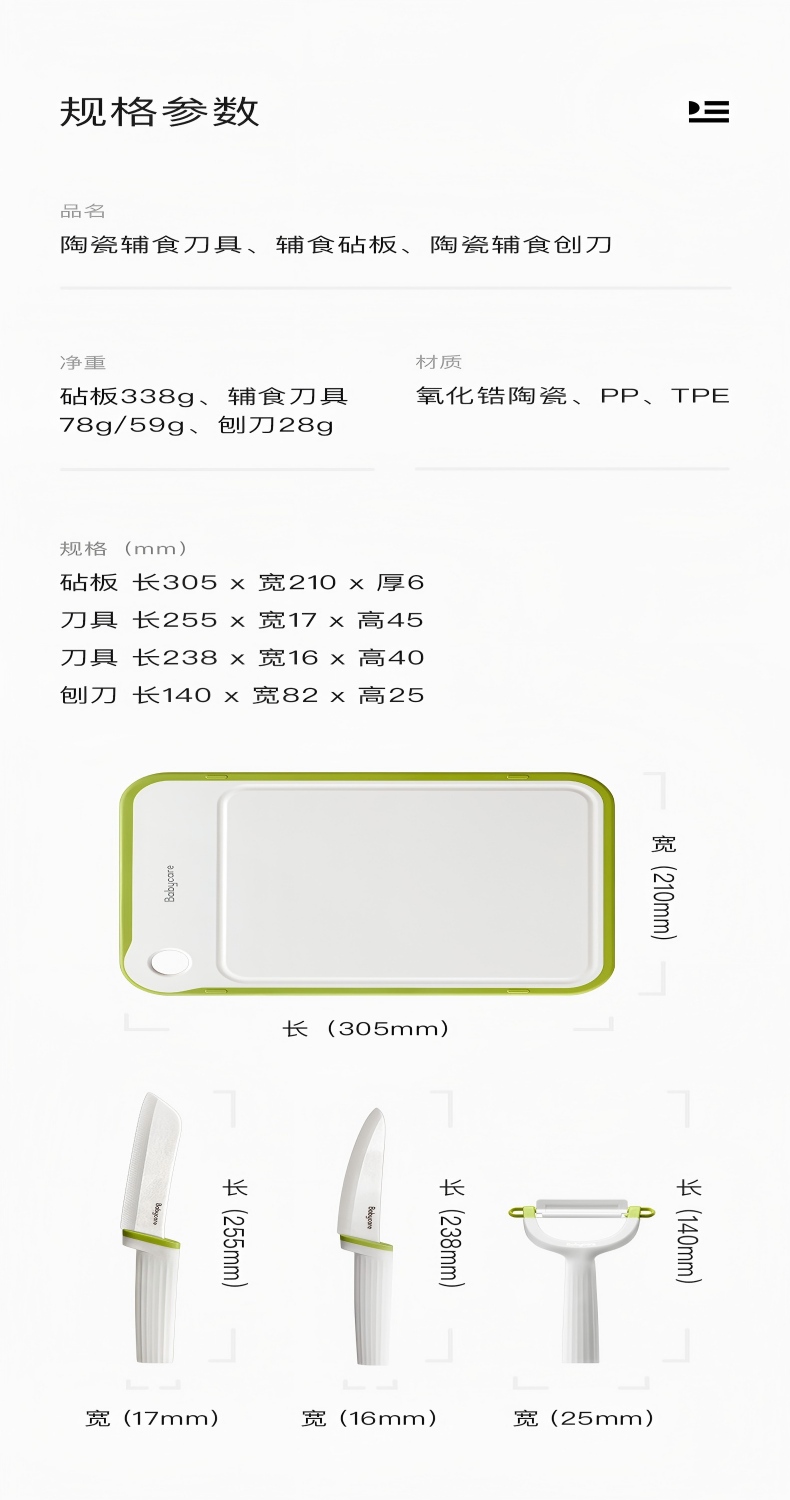 babycare 辅食刀具宝宝辅食工具婴儿全套家用砧板菜刀陶瓷刀具套装