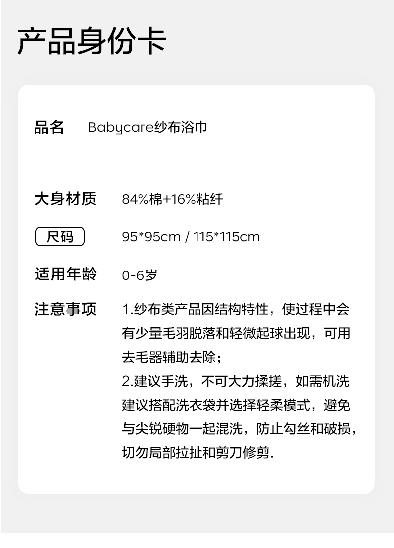 babycare 纱布浴巾115*115cm-哈沃伊灰蓝