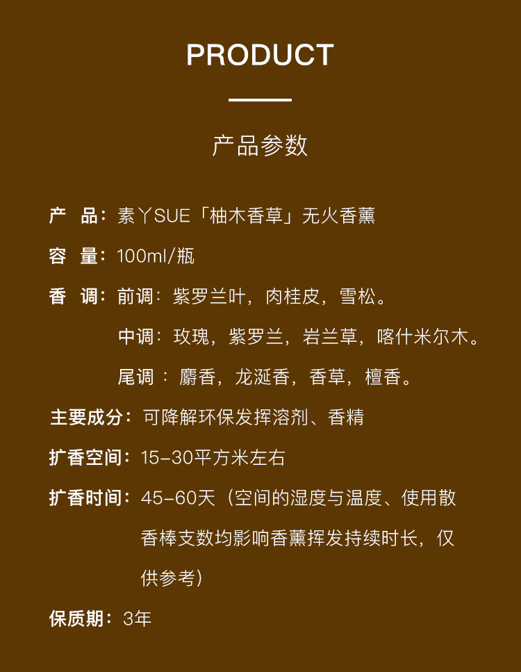 素丫 小满系列无火香薰(柚木香草)(100ml)