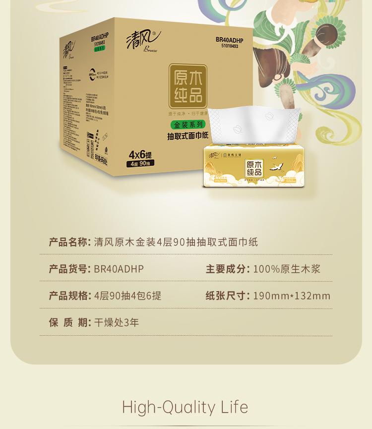 清风 敦煌文创联名系列抽纸4层90抽/包x4包/1提x6提/箱(共24包)