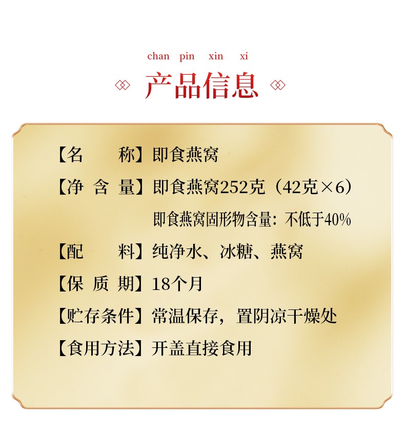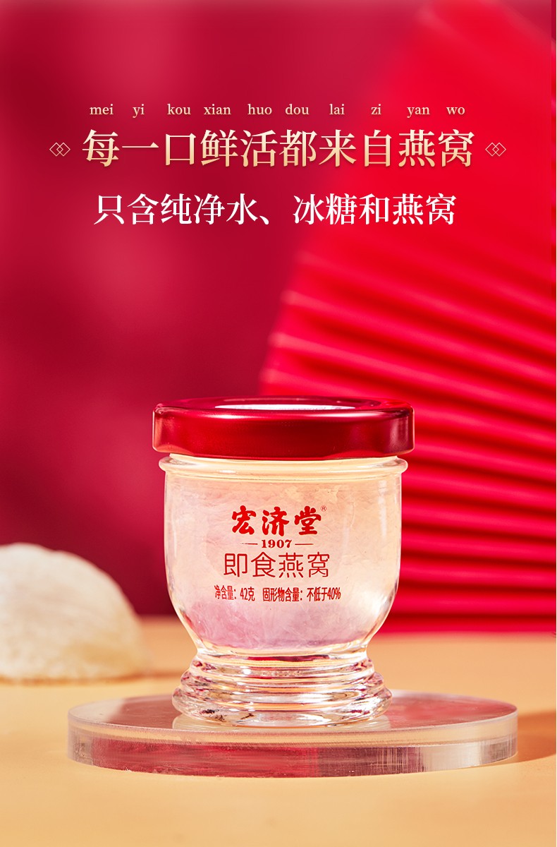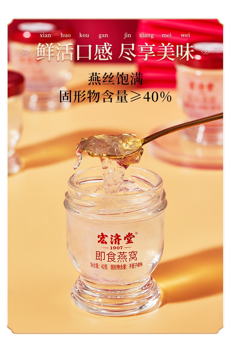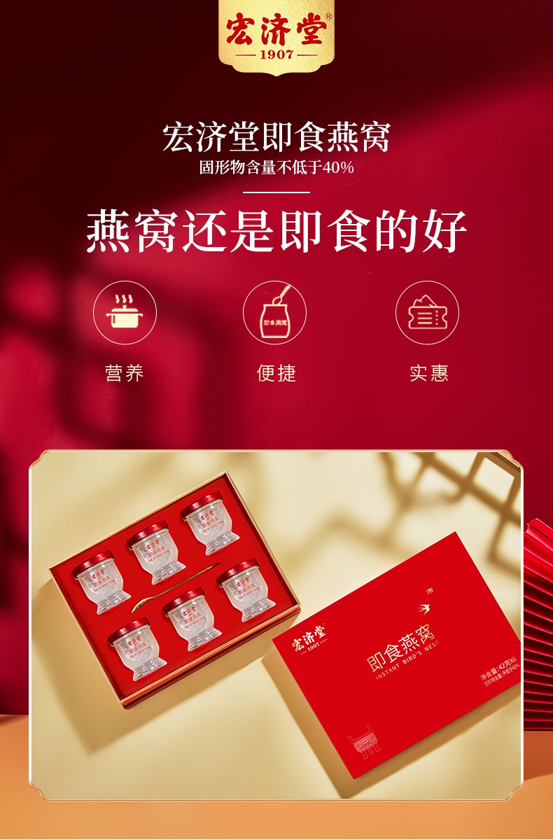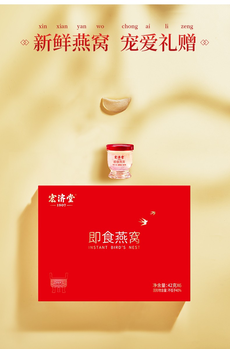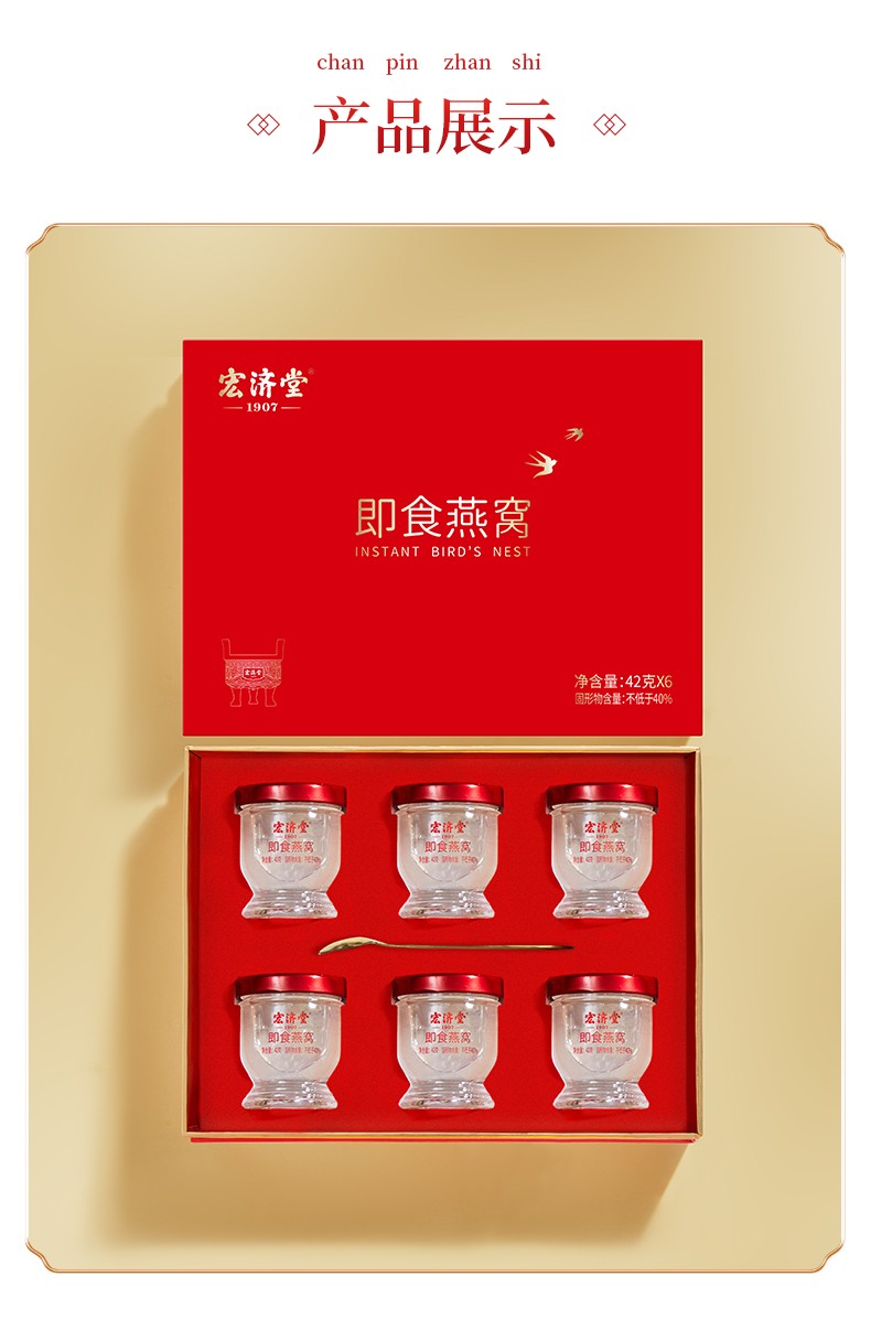 宏济堂 即食燕窝252g(42g/瓶×6瓶)/盒固形物含量≥40%新年货礼盒