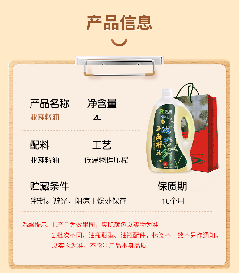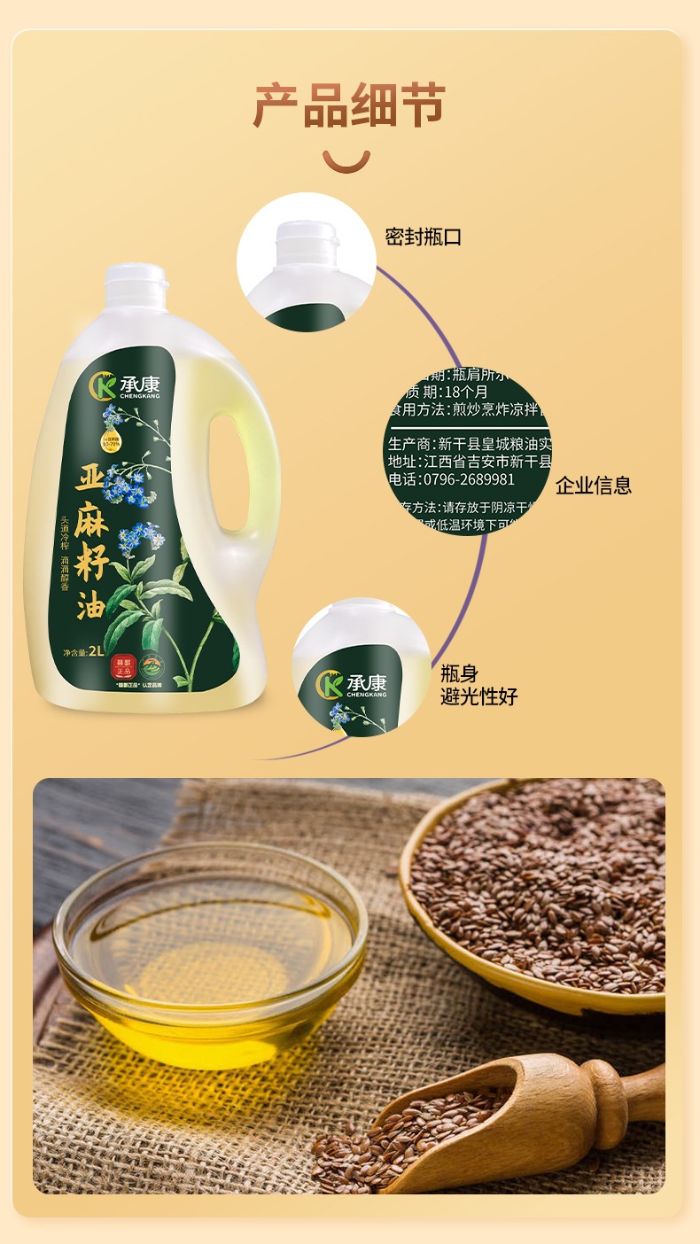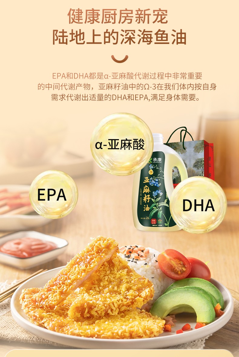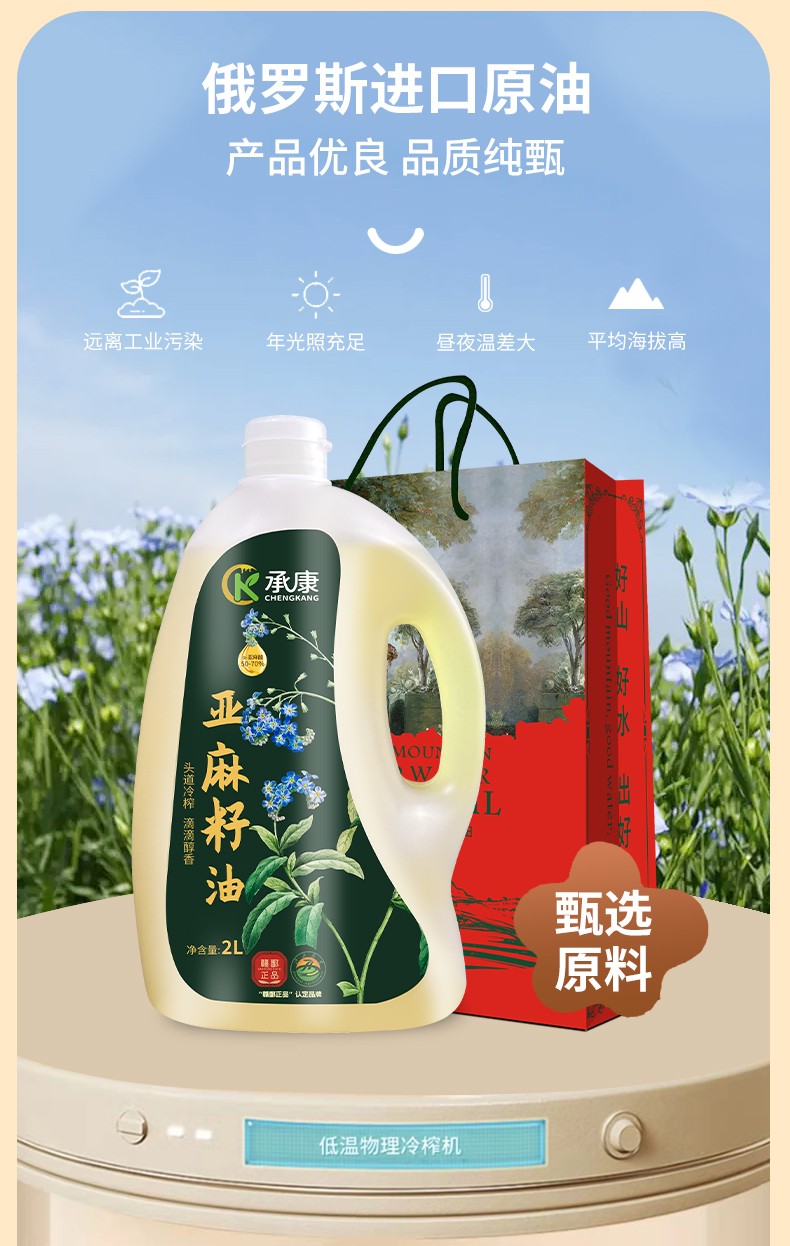 承康 俄罗斯进口原料承康 纯亚麻籽油(礼盒款+高亚麻酸)2L/桶