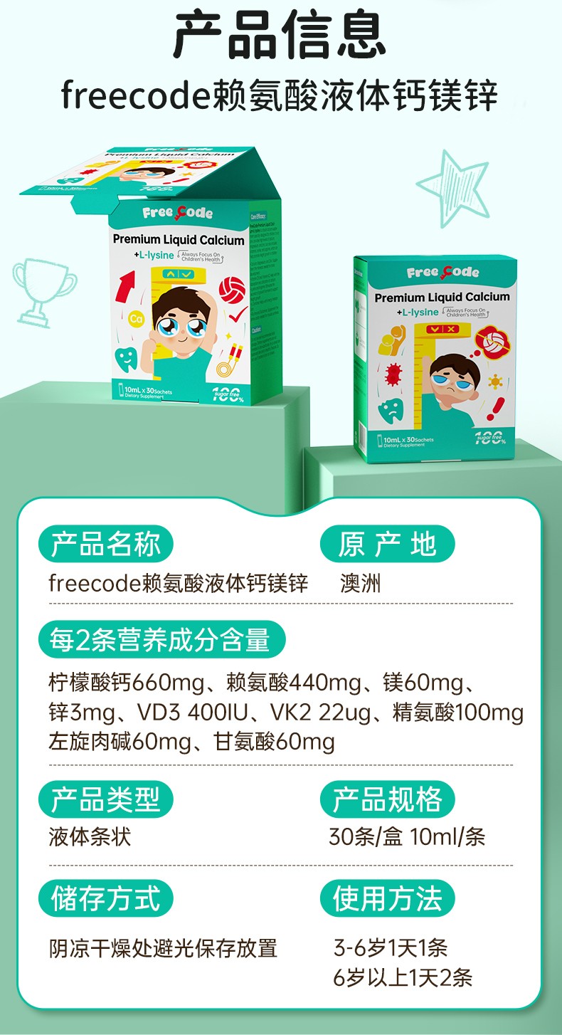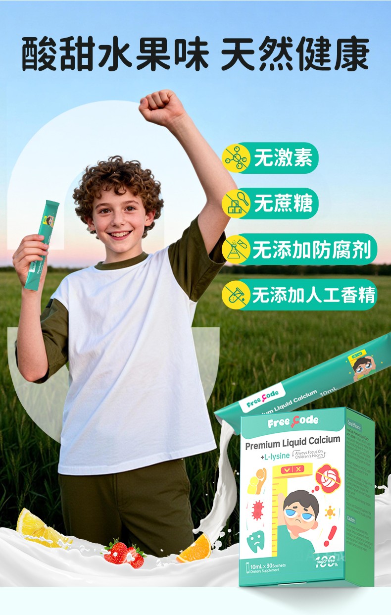 FreeCode红心钥匙儿童赖氨酸液体钙30条/盒
