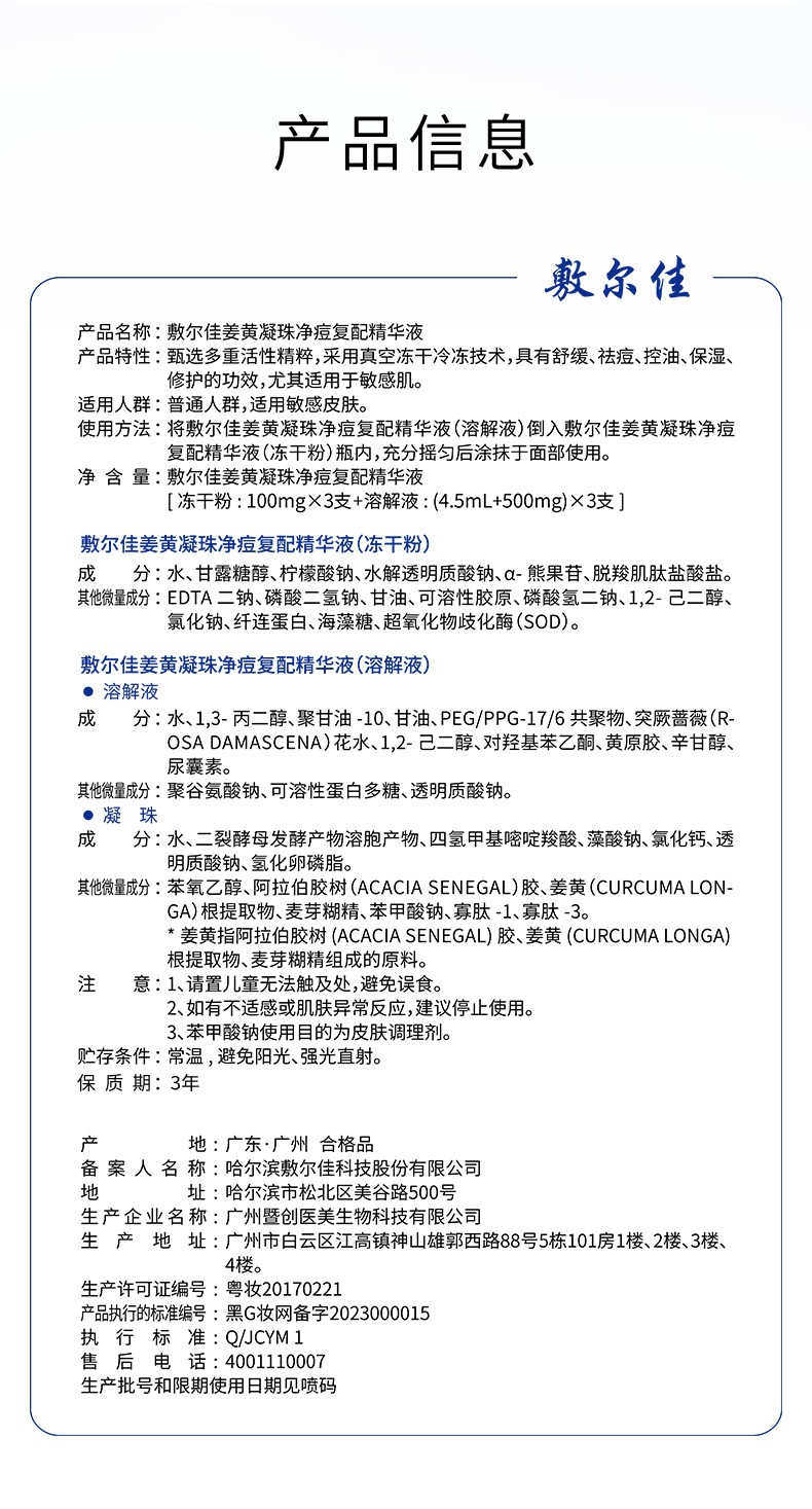 敷尔佳 姜黄凝珠净痘复配精华液姜黄素精华