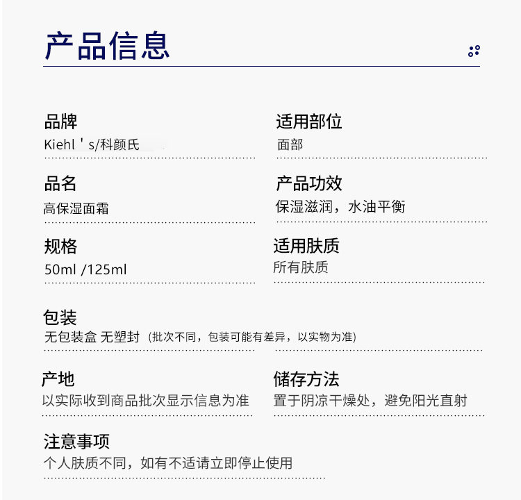 美国Kiehl's科颜氏 高保湿面霜大罐(125ml)