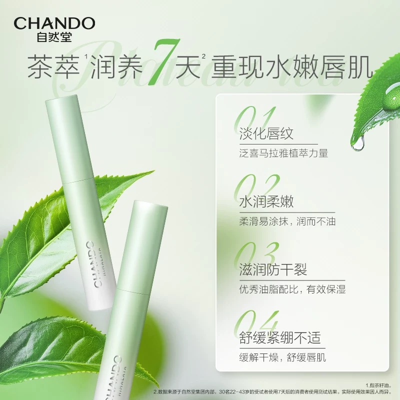 自然堂 茶萃润纹小绿管护唇膏1.8g