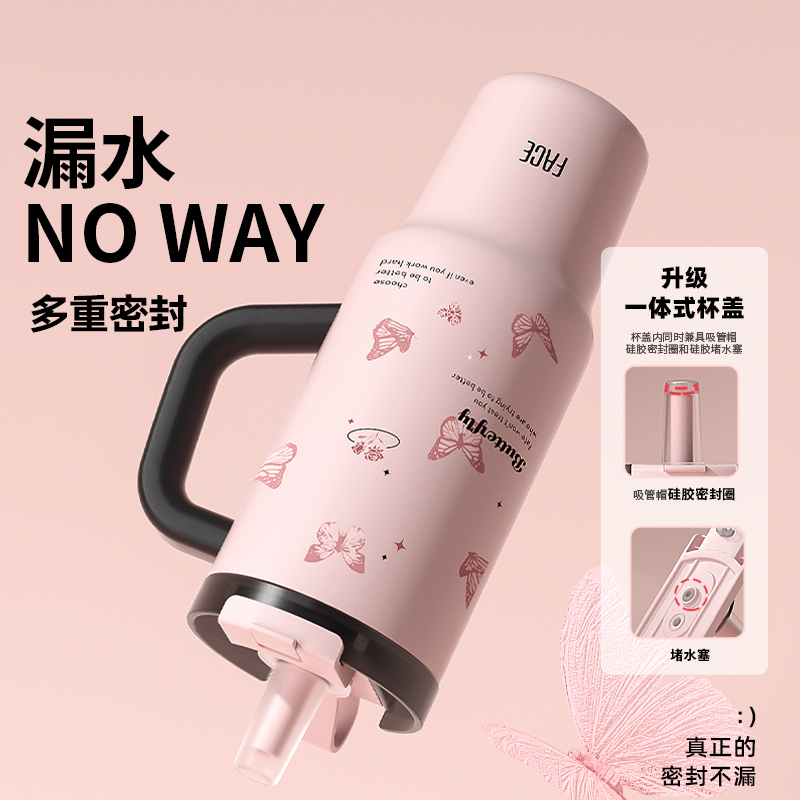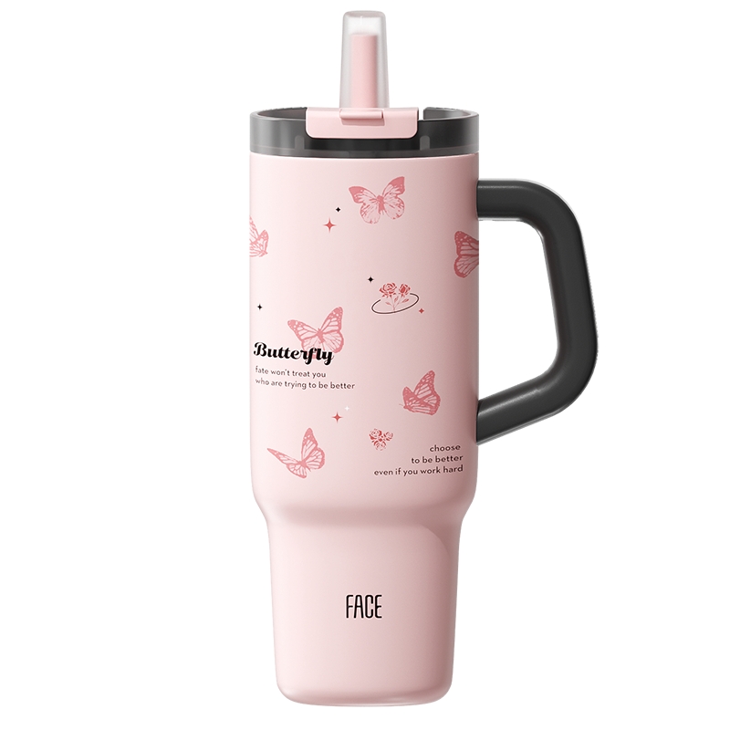 FACE 一盖双饮巨无霸保温杯(陶瓷内胆)【粉蝴蝶】(1150ml)