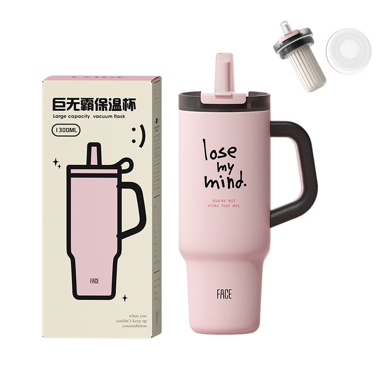 FACE 一盖双饮巨无霸保温杯(陶瓷内胆)【乌梅粉】(1150ml)