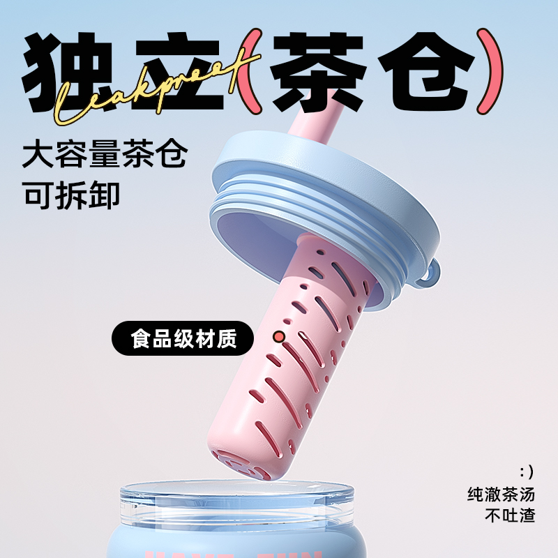 FACE 圆系列便携泡茶杯茶水分离保温杯【冰岛蓝】(350ml)