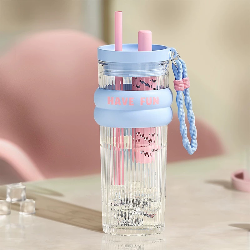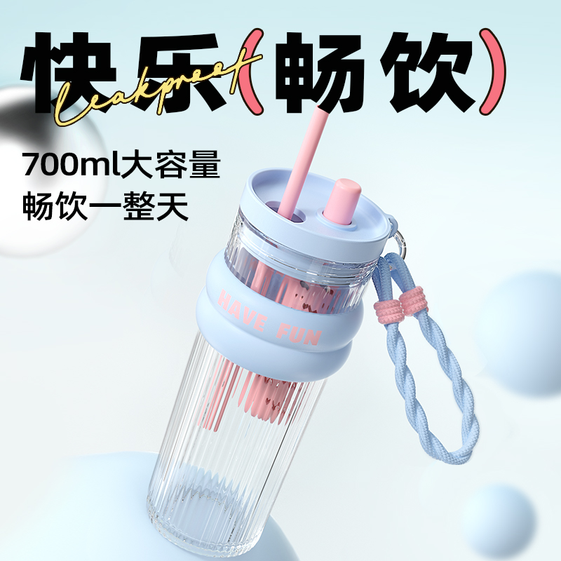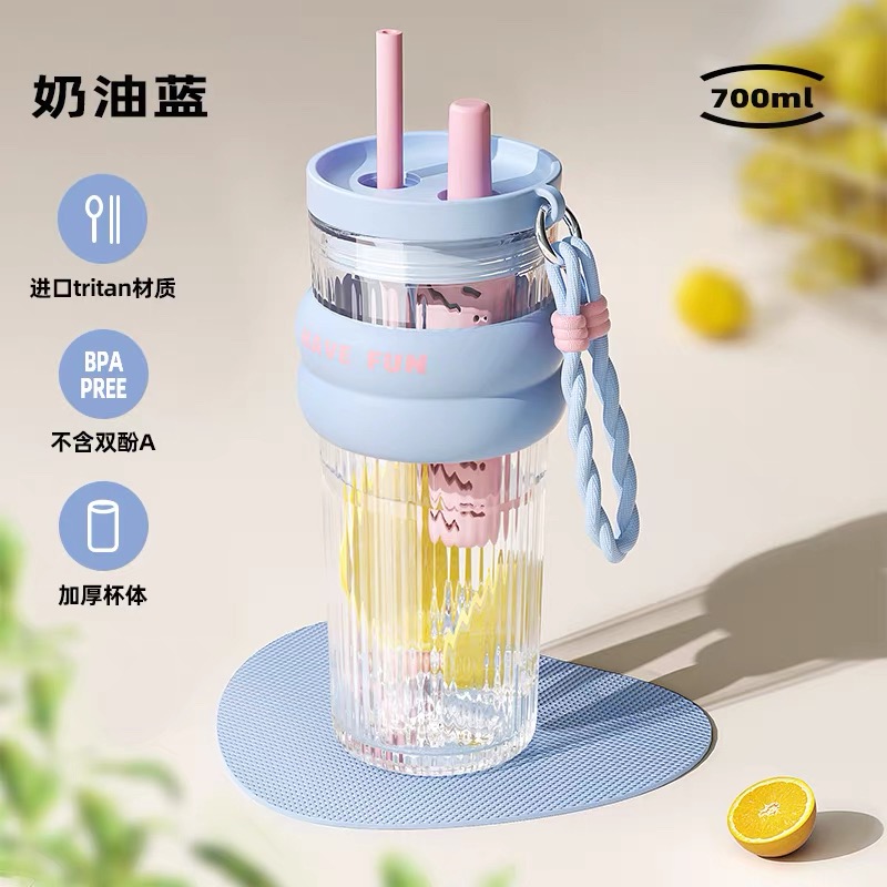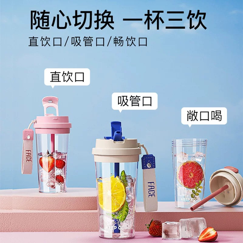 FACE 大容量潮流吸管杯【蓝色】(700ml)