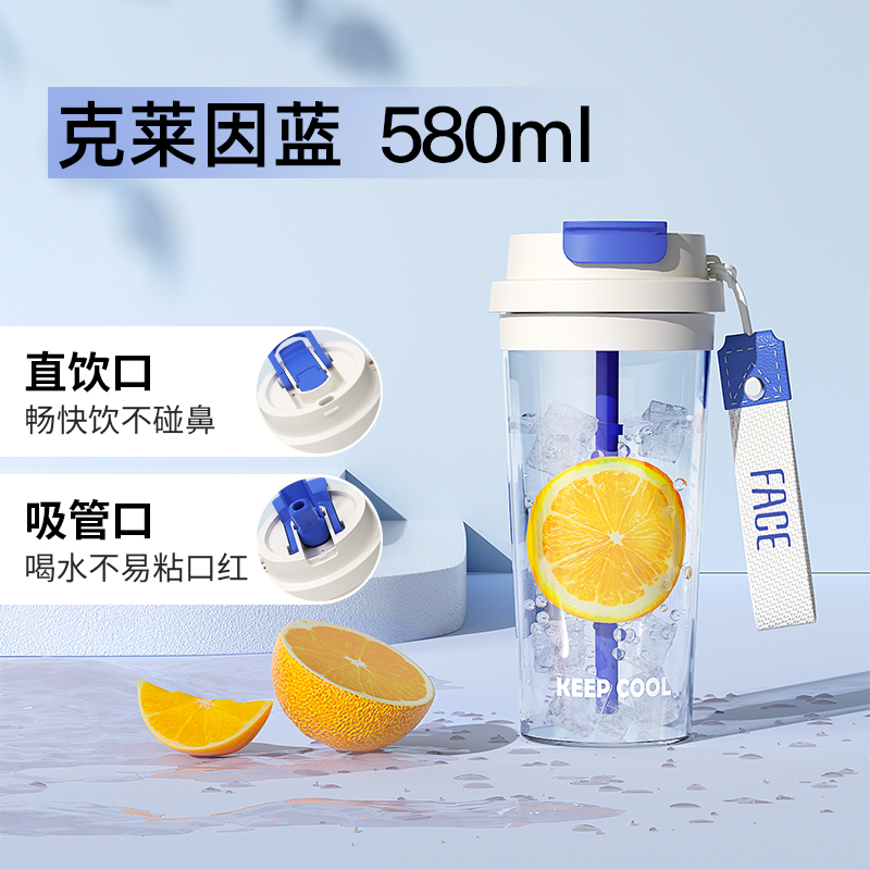 FACE 双饮手提吸管杯【克莱因蓝】(580ml)