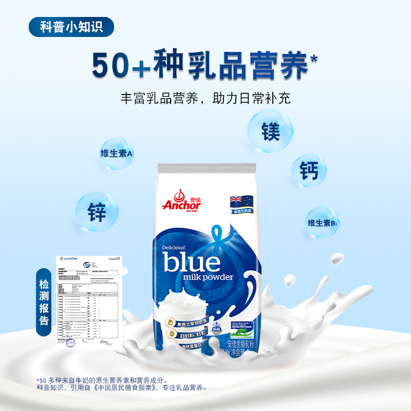 新西兰版本 贝特恩(BTNature)蓝一号成人全脂高钙牛奶粉 1kg/罐